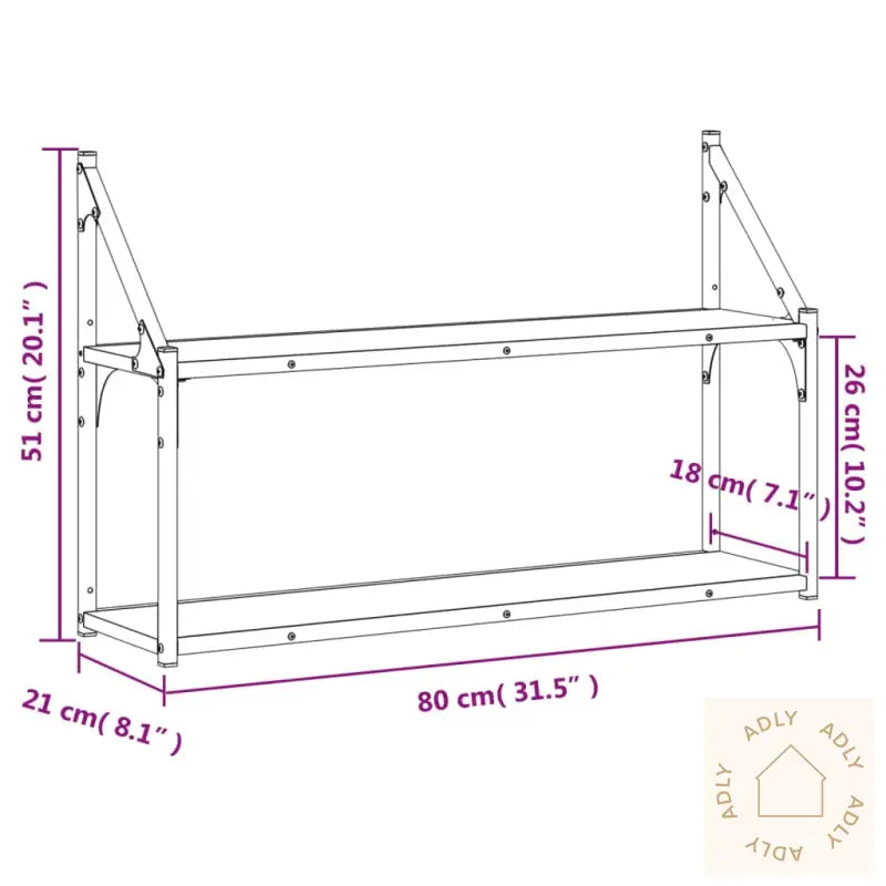 Skruer og plugger til veggmontering er ikke inkludert. Velg skruer og plugger som passer dine veggtyper for trygg montering – spør gjerne fagfolk om du er usikker. Følg alltid monteringsanvisningen nøye for å sikre at hyllen blir hengende trygt.Farge: røkt eikMaterialer: konstruert tre, stålMål: 80 x 21 x 51 cm (B x D x H)Montering kreves: ja