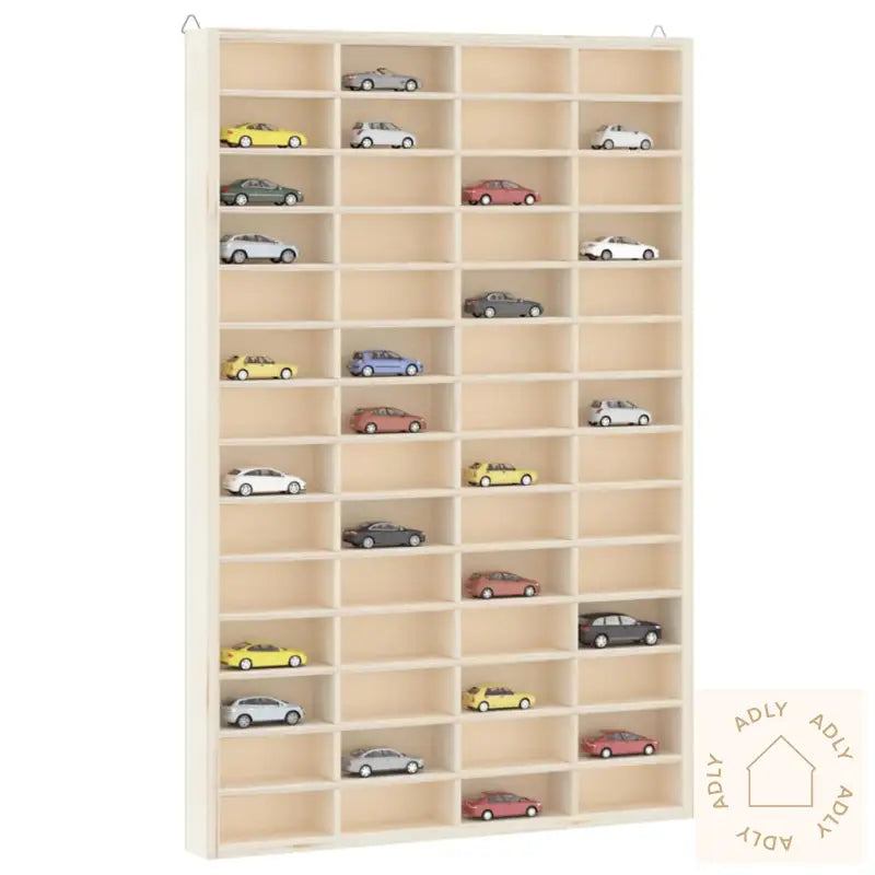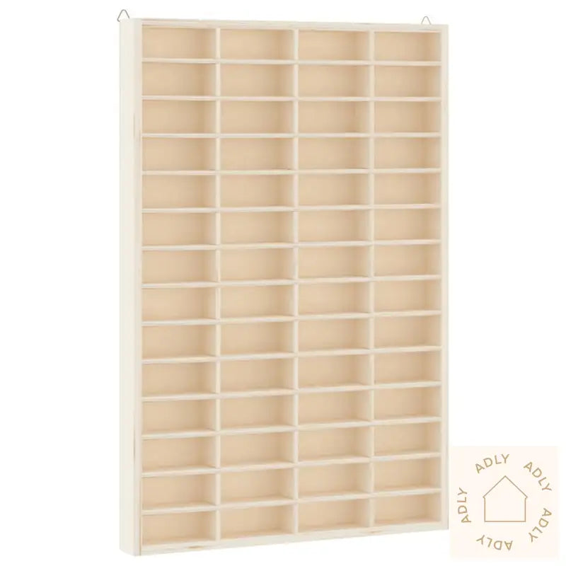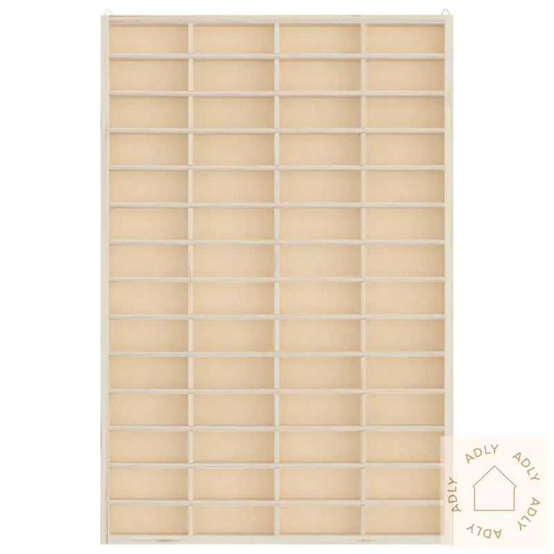 Slitesterkt materiale: Det veggmonterte vitrineskapet er laget av solid kryssfiner. Dette sikrer holdbarhet over tid, så du kan stole på møblene dine i mange år fremover – ideelt til både møbler til hjemmet og utendørsmøbler som krever ekstra styrke.Veggmontert design: Skapet har to trekantkroker, noe som gjør det enkelt å henge rett på veggen uten å bore hull i selve skapet. Du sparer gulvplass, og får samtidig et elegant blikkfang som passer i alt fra stue til soverom.Rikelig med oppbevaringsplass: Med hele 56 rom får du god plass til å sortere småting. Enten det er samleobjekter, nips eller småpersonlige eiendeler, holder tingene seg samlet og lett tilgjengelig. Dette gir deg enklere hverdag og et mer oversiktlig miljø.Forbedret sikkerhet: Myke hjørnebeskyttere av hardt papir sørger for at alle skarpe kanter blir ivaretatt, slik at skapet blir trygt å ha i hjem med barn eller husdyr.Brede bruksområder: Vitrineskapet har en enkel, tidløs utforming som gjør det lett å matche med ulike typer interiør. Den passer like godt sammen med moderne møbler til hjemmet som klassiske hagemøbler – bruk den hvor du ønsker ekstra orden og stil.Materiale: KryssfinerSamlet mål: 40 x 4,5 x 60 cm (B x D x H)Mål på hvert rom: 9 x 3,5 x 3,5 cm (B x D x H)Antall rom: 5614 rader og 4 kolonnerMed 2 hengekrokerMaksimal vektkapasitet: 20 kg