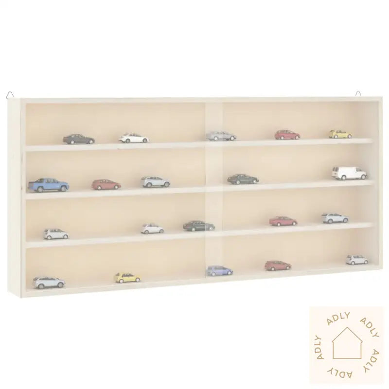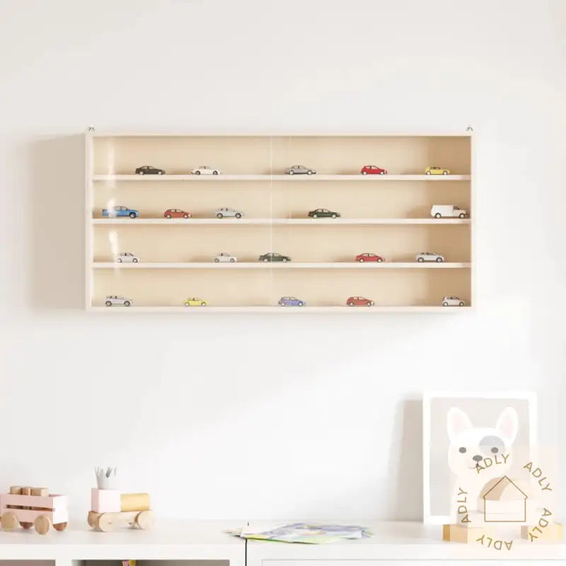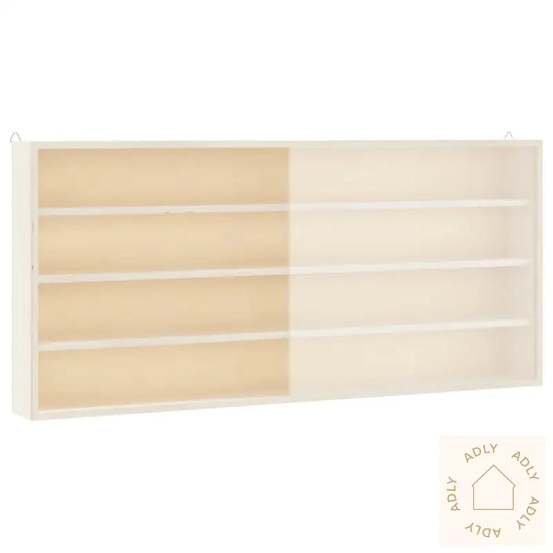 Slitesterkt materiale: Det veggmonterte vitrineskapet er laget av solid kryssfiner som tåler daglig bruk og gir langvarig holdbarhet.Veggmontert design: Den henges enkelt opp med to trekantkroker, så du sparer gulvplass og får mer plass til andre typer møbler eller hagemøbler uten behov for å bore hull i skapet.Rikelig med lagringsplass: Fire praktiske hyller bak gjennomsiktige dører gjør det lett å holde styr på dine ting, samtidig som de beskyttes mot støv, perfekt for alt fra dekor til små samlinger.Forbedret sikkerhet: Beskyttelse av hjørnene med hardt papir gjør det sikrere rundt barn og kjæledyr, ved å redusere risikoen for skader på grunn av skarpe kanter.Bredt bruksområde: Skapet har et tidløst, enkelt uttrykk som passer inn blant all slags møbler til hjemmet, enten det er i stue, spisestue eller på soverommet, og matcher fint med eksisterende bokhyller eller andre stående hyller.Materiale: KryssfinérDørmateriale: PET (polyetylentereftalat)Samlet mål: 80 x 8,5 x 37 cm (B x D x H)Mål per hylle: 78 x 6,5 x 8 cm (B x D x H)4 hyller2 dører og 2 hengekrokerMaksimal vektkapasitet: 20 kg
