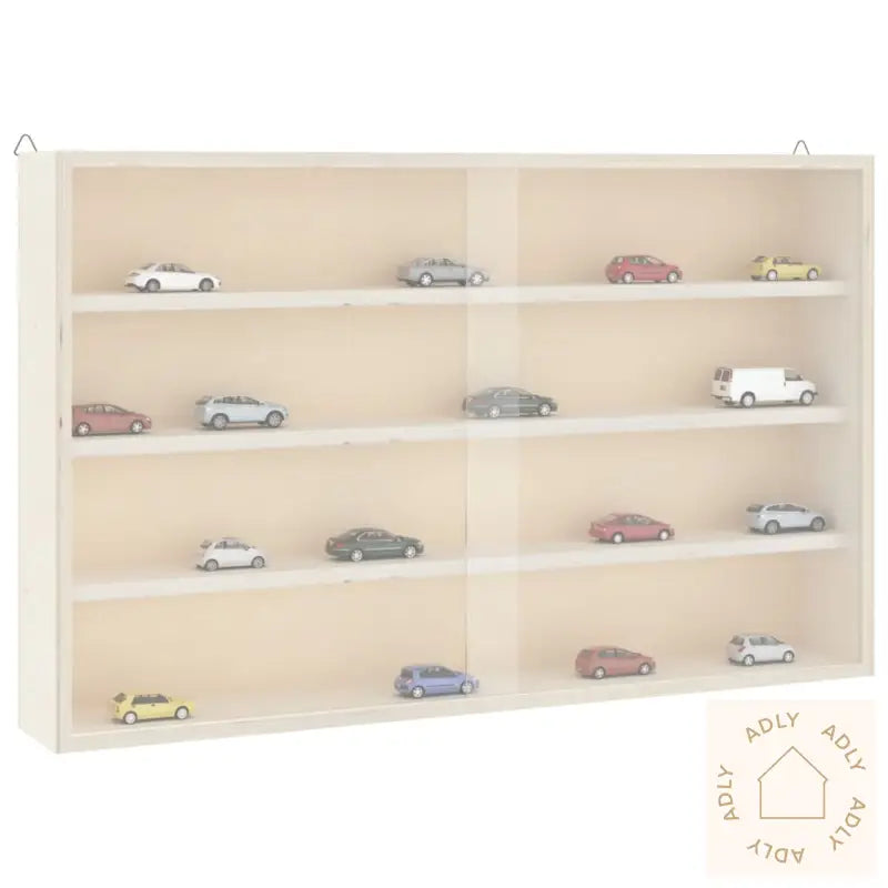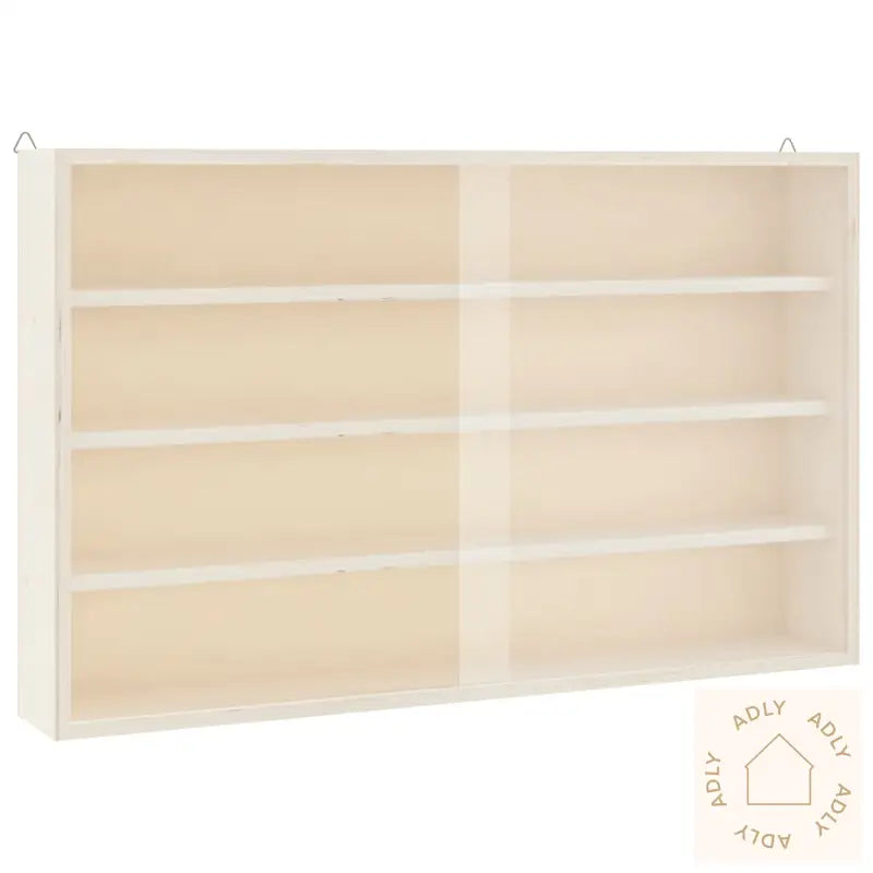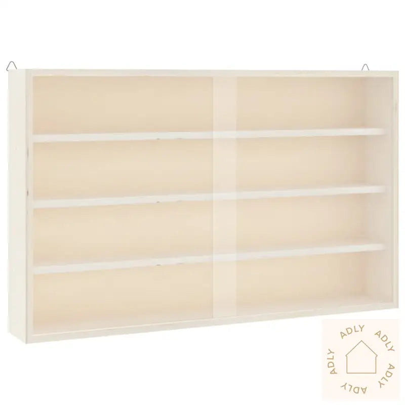 Slitesterkt materiale: Dette veggmonterte vitrineskapet er laget av robust kryssfiner. Materialet gjør skapet solid og gir lang holdbarhet selv ved daglig bruk, slik at dette blir en pålitelig investering i dine møbler.Veggmontert design: Praktiske trekantkroker lar deg enkelt henge skapet opp uten å bore hull i skapet, så du slipper å bruke gulvplass. Det passer spesielt bra om du vil utnytte små rom eller kombinere det med bokhyller og stående hyller.Rikelig med lagringsplass: Med fire praktiske hyller og gjennomsiktige PET-dører får du god plass til å vise frem gjenstander, bøker eller dekor – alt beskyttet mot støv og lett tilgjengelig.Forbedret sikkerhet: Skarpe hjørner er polstret med hardt papir, noe som gjør hyllen tryggere for barn og kjæledyr. Mindre risiko for små uhell eller riper i travle familieliv.Brede bruksområder: Den tidløse og enkle designen matcher raskt ulike interiørstiler. Skapet kan brukes både i stuen, spisestuen eller på soverommet sammen med andre moderne møbler til hjemmet eller som supplement til bokhyller og stående hyller for ekstra oppbevaring og stil.Materiale: KryssfinérDørmateriale: PET (polyetylentereftalat)Samlet mål: 60 x 8,5 x 37 cm (B x D x H)Mål på hver hylle: 58 x 6,5 x 8 cm (B x D x H)Med 4 hyllerMed 2 dører og 2 hengekrokerMaksimal vektkapasitet: 20 kg