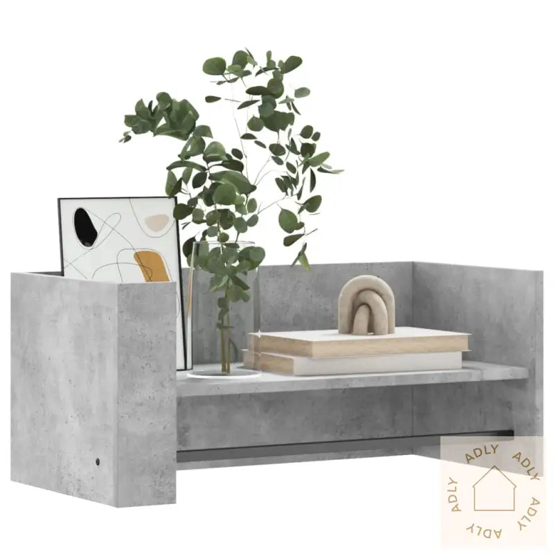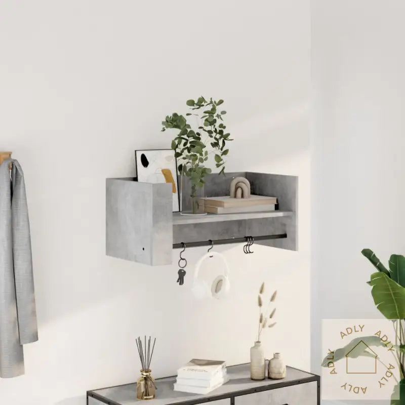Skruer og plugger for veggmontering er ikke inkludert. Finn skruer og plugger som passer spesielt til din veggtype. Er du usikker, rådfør deg gjerne med en profesjonell for å sikre trygg montering. Husk å følge instruksjonene nøye under montering.Farge: betonggråMateriale: konstruert treMål: 70,5 x 35 x 30,5 cm (B x D x H)Maksimal lastekapasitet (totalt): 20 kgMontering kreves: ja