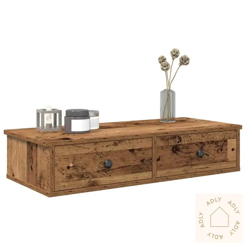 Skruer og plugger til veggmontering følger ikke med. For best mulig resultat bør du bruke festemidler som passer veggene hjemme hos deg. Er du usikker, rådfør deg gjerne med fagfolk, og følg monteringsveiledningen nøye for sikker montering.Farge: gammelt treMateriale: konstruert treSamlet mål: 80 x 31 x 17 cm (B x D x H)Mål på hver skuff: 26 x 28 x 11,5 cm (B x D x H)Maks. vektkapasitet: 60 kgMontering kreves: ja