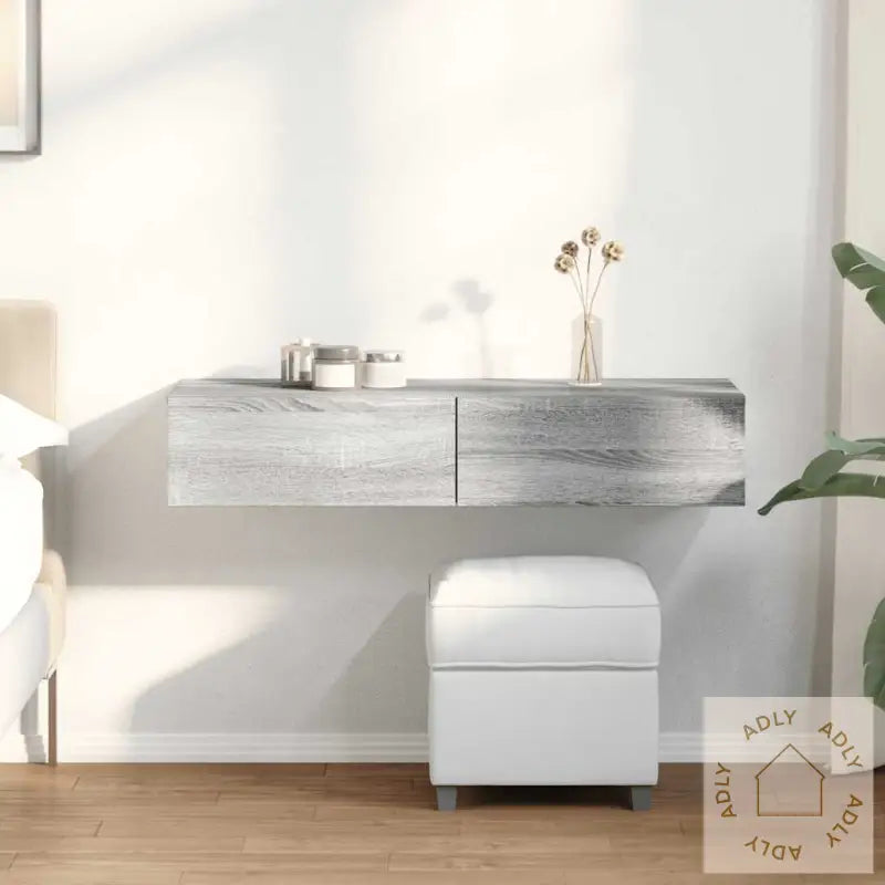 Stabilt og slitesterkt materiale: Skapet er laget av konstruert tre – et sterkt og pålitelig materiale som tåler daglig bruk og gir lang levetid. Den glatte overflaten er motstandsdyktig mot fukt, vridning og sprekker, så dette er et solid supplement til dine møbler til hjemmet.Rikelig med oppbevaringsplass: Veggskapet har god plass for organisering av alt fra nøkler og småting til bøker og dekor, slik at du holder hverdagsting oversiktlig samlet og lett tilgjengelig.Veggmontert funksjon: Et vegghengt, flytende nattbord lar deg spare gulvplass – perfekt om du vil ha et ryddigere inntrykk. Det festes enkelt på veggen i ønsket høyde, så du kan tilpasse det etter rommets behov.Visningsfunksjon: Overflaten på skapet passer også utmerket til å vise frem personlige favoritter som bilder, dekor eller små planter – perfekt for å gi rommet mer liv og personlighet.Brede bruksområder: Takket være et tidløst og nøytralt design kan dette veggskapet passe sømløst inn sammen med andre møbler i stua, på soverommet eller i entreen. Det matcher ulike stiler og tilfører ekstra funksjonalitet uansett hvor det plasseres.Godt å vite: