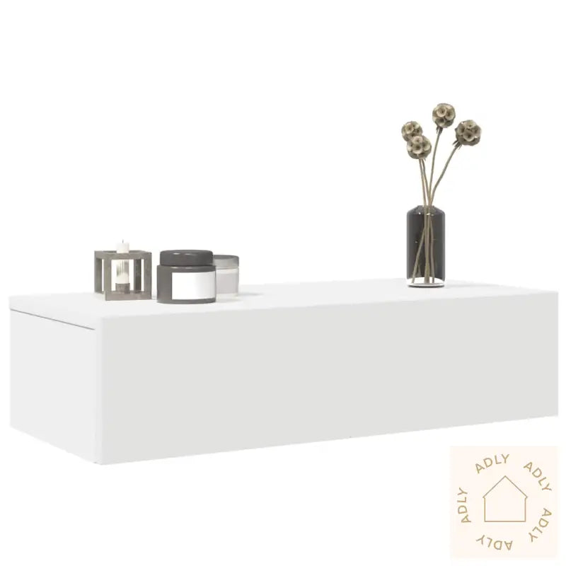 Stabilt og slitesterkt materiale: Hyllen er laget av konstruert tre, et solid og stabilt materiale kjent for lang levetid. Den glatte overflaten gjør at det ser pent ut over tid, og materialet tåler både fuktighet, vridning og sprekker – så dette er et trygt valg for alle som ser etter robuste møbler til hjemmet.Rikelig med oppbevaringsplass: Med god plass skjult bak skuffene gir dette veggskapet deg en smart løsning for å få unna alt fra småting til større gjenstander. Hold tingene fortsatt lett tilgjengelige uten å ha dem fremme – perfekt for å holde orden på stua, soverommet, eller hvor du måtte ønske.Veggmontert funksjon: Den vegghengte løsningen frigjør gulvplass og gjør rengjøringen enklere. Skapet svever i høyden og monteres enkelt på veggen, så det passer selv i små rom.Visningsfunksjon: Oppå skapet får du ekstra plass til å vise frem bokhyller og stående hyller i miniformat, favorittbilder, pyntegjenstander eller blomster – bruk toppen for å fremheve det du liker best.Brede bruksområder: Tidløst design gjør at skapet enkelt blander seg inn i resten av møbleringen. Det passer i stue, gang eller soverom, og kan kombineres med andre moderne eller klassiske møbler etter behov.Godt å vite: