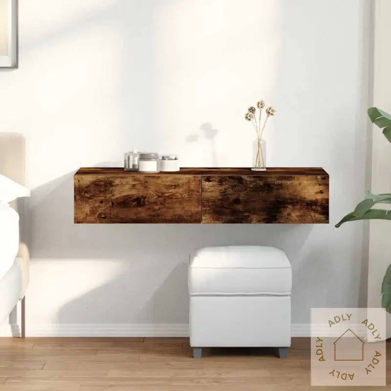 Stabilt og slitesterkt materiale: Vegghyllen er laget av konstruert tre, et robust og stabilt materiale som tåler daglig bruk. Overflaten er jevn og motstandsdyktig mot fuktighet, vridning og sprekker, så den holder seg pen lenge. Dette gjør den til et pålitelig valg når du ser etter holdbare møbler eller bokhyller og stående hyller.Rikelig med oppbevaringsplass: Med flere skuffer får du god plass til å holde orden på småting, papirer og andre hverdagsting. Oppbevar alt fra fjernkontroller til bøker lett tilgjengelig, samtidig som du unngår rot på benker og gulv.Veggmontert funksjon: Dette flytende nattbordet eller veggskapet monteres enkelt på veggen og frigjør gulvplass—perfekt for mindre rom eller for deg som vil ha en luftig og moderne innredning blant andre møbler til hjemmet.Visningsfunksjon: Den flate toppen gir deg en fin plass for å sette frem bilder, små planter, blomster eller andre dekorative elementer og gi rommet ditt et personlig preg.Brede bruksområder: Takket være sin tidløse design passer veggskapet inn i ulike rom, enten det er stuen, soverommet eller kontoret. Det lar seg lett kombinere med andre hagemøbler eller møbler, og gir et helhetlig uttrykk.Godt å vite: