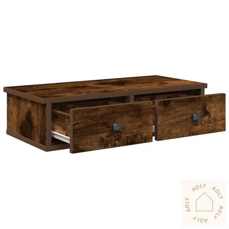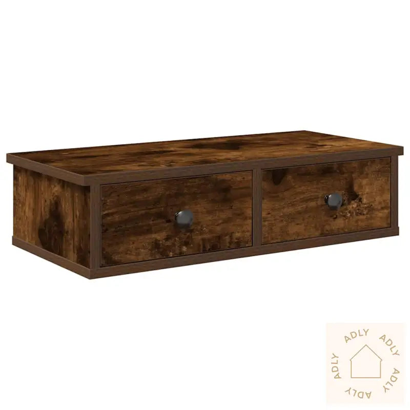 Skruer og plugger for veggmontering følger ikke med, så sørg for å bruke festemidler som passer til veggen hjemme hos deg. Ta gjerne kontakt med fagfolk om du er i tvil, og følg instruksjonene nøye under montering.Farge: Røkt eikMateriale: Konstruert treSamlet mål: 60 x 25 x 15 cm (B x D x H)Mål på hver skuff: 26 x 28 x 11,5 cm (B x D x H)Maks vektkapasitet: 60 kgMontering kreves: Ja