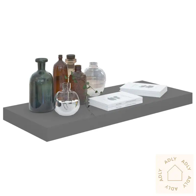 Farge: høyglans gråMaterialer: bikake MDF, metallMål: 60 x 23,5 x 3,8 cm (L x B x H)Maksimal lastekapasitet: 7 kgUsynlig monteringssystem gir stilren montering uten synlige skruer eller beslagMontering kreves: ja