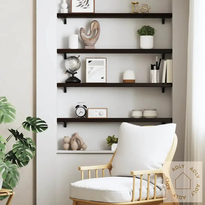 - Slitesterk konstruksjon: Vegghyllen er laget av heltre eik, et solid og naturlig materiale kjent for sin styrke og lange levetid. Eik har en vakker, middels brun farge og en tett kornstruktur, noe som gir hver hylle et unikt og eksklusivt utseende. Heltre eik er et populært valg for møbler til hjemmet, nettopp fordi det kombinerer estetikk og holdbarhet.