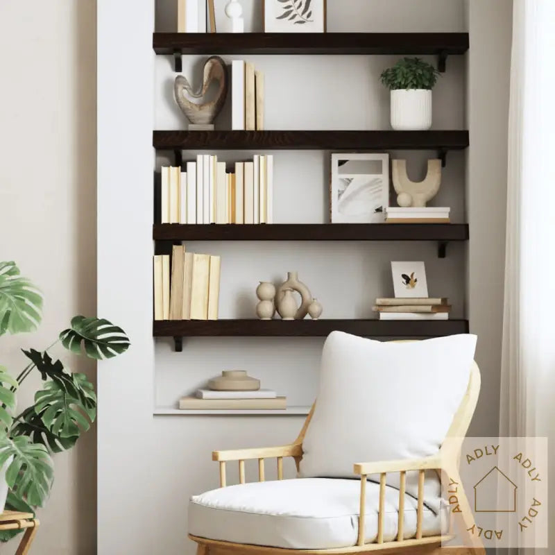 Slitesterk konstruksjon: Vegghyllen er laget av heltre eik – et solid og holdbart naturmateriale som både ser bra ut og tåler daglig bruk. Eiketreet har en dyp, mellombrun farge med tett kornstruktur, noe som gjør hver hylle helt unik samtidig som den legger til et eksklusivt preg på dine møbler til hjemmet.Allsidig bruk: Denne oppbevaringshyllen kan enkelt kombineres med ulike underlag eller monteres der du trenger ekstra plass. Bruk den som tradisjonell hylle, baderomsplate, skapplate, bordplate, eller som tilbehør til hagemøbler, avhengig av dine behov.Klar til bruk: Overflaten på hyllen er behandlet med mørk maling, så du trenger ikke tenke på ekstra behandling før du begynner å bruke den – praktisk for deg som vil ha raske løsninger til hjemmet.Unik naturlig kant: Hver hylle er håndlaget og har en naturlig kant – ingen hylle er helt lik. Knuter, naturlige sprekker, lett buede former og variasjoner i fargetone gjør at produktet skiller seg ut og gir ekte karakter. Dette gir et levende og autentisk uttrykk, samtidig som det gir deg et hyllenelement som ingen andre har maken til.Godt å vite:
