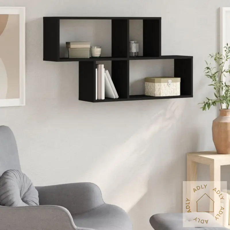 Skruer og plugger for veggmontering følger ikke med. Det anbefales å finne festemidler som passer veggtypen hjemme hos deg for best mulig resultat. Er du usikker på hvordan den skal henges opp, kan det være lurt å spørre en fagperson. Husk å følge monteringsveiledningen nøye for et godt sluttresultat.Farge: svartMateriale: konstruert treMål: 100 x 20 x 53 cm (B x D x H)Maksimal lastekapasitet totalt: 85 kgMontering kreves: jaMed sitt funksjonelle design og holdbare materialer, passer denne vegghyllen perfekt i hjemmet – både alene eller sammen med annet tilbehør og møbler. Dette er et flott valg for deg som ønsker stilrene detaljer og praktisk lagringsplass i ett.
