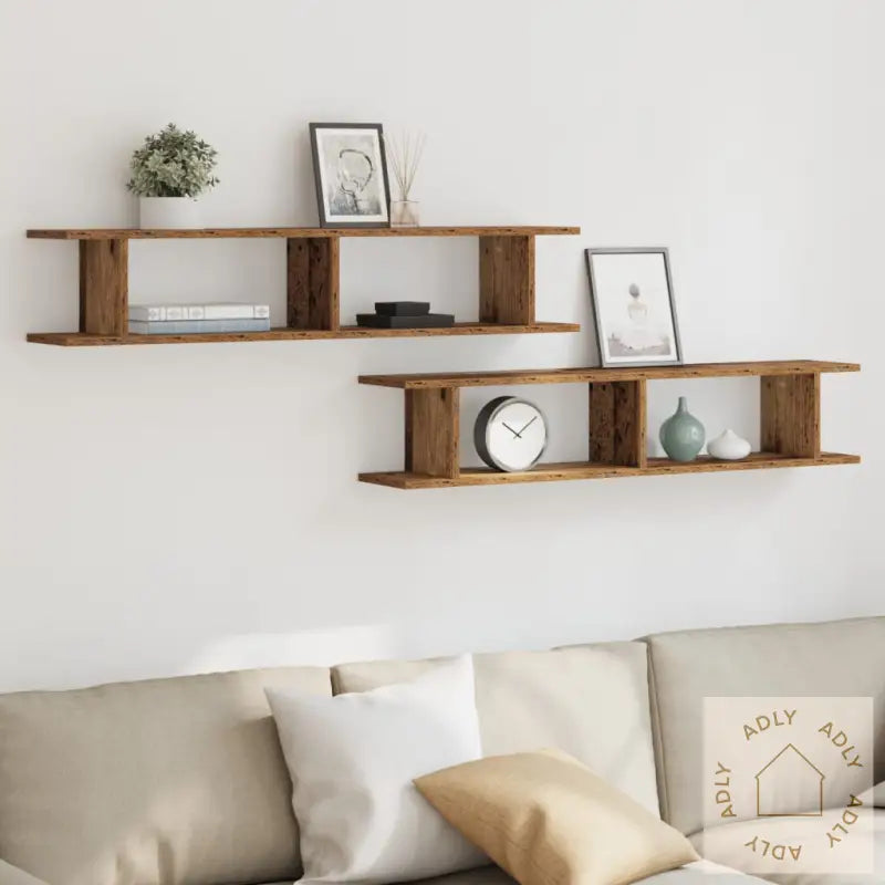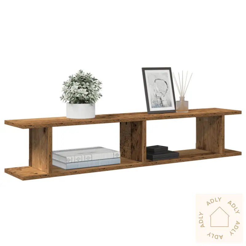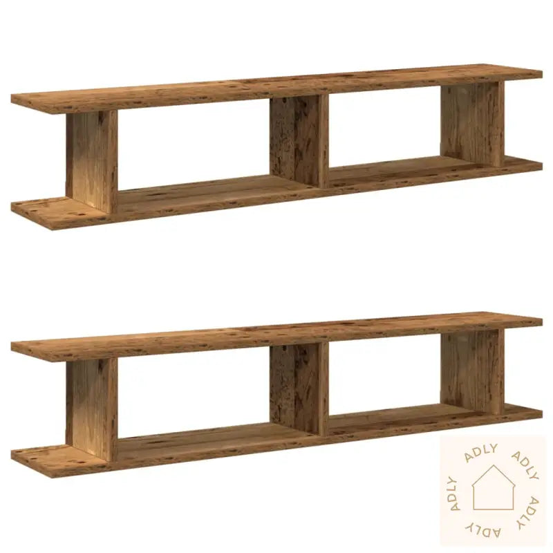 Skruer og plugger til å feste vegghyllene følger ikke med, så husk å bruke passende festemidler for dine veggtyper. Om du er usikker, anbefales det å rådføre seg med en fagperson. Følg bruksanvisningen nøye for trygg montering.Farge: gammelt treMateriale: konstruert treMål: 105 x 18 x 20 cm (L x B x T)Montering kreves: jaLeveransen inneholder:2 x vegghyller