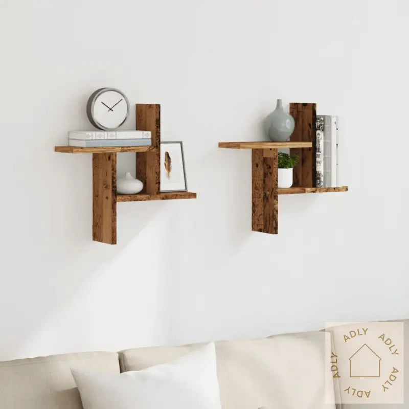 Skruer og plugger til veggmontering følger ikke med. For best resultat anbefaler vi at du velger festeanordninger som passer til akkurat dine vegger. Er du usikker, ta kontakt med en profesjonell. Husk å følge monteringsanvisningen trinn for trinn.Farge: gammelt treMateriale: konstruert treMål: 38 x 12 x 38 cm (B x D x H)Maksimal lastekapasitet: 10 kg totaltMontering krevesLeveransen inneholder:2 x vegghyller