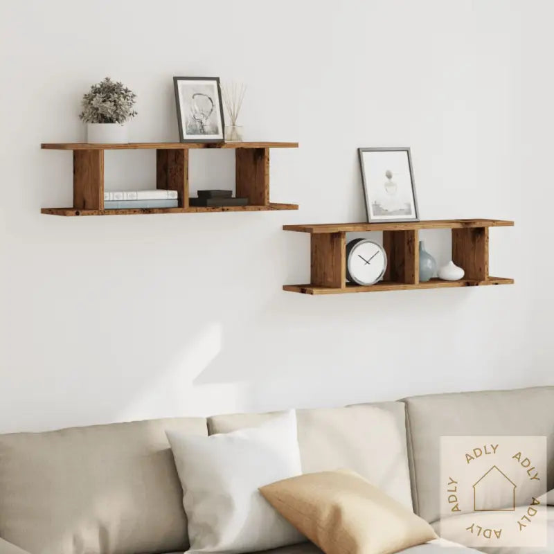 Skruer og plugger til veggmontering følger ikke med. Du bør velge skruer og plugger som passer til veggtypen der du vil montere hyllene. Hvis du er usikker på hva slags skruer som passer, anbefaler vi å spørre noen som har peiling, eller lese instruksjonene nøye for best resultat.Farge: gammelt treMateriale: konstruert treMål: 75 x 18 x 20 cm (L x B x T)Maks. vektkapasitet (per hylle): 20 kgMontering kreves: jaLeveransen inneholder:2 x vegghyllerDisse vegghyllene gir deg fleksibel lagring uten å gå på kompromiss med stilen. Perfekt når du trenger ekstra oppbevaringsplass sammen med andre møbler eller vil piffe opp hjemmets uttrykk. Kombiner gjerne med andre interiørfavoritter eller utendørsmøbler for et helhetlig preg.