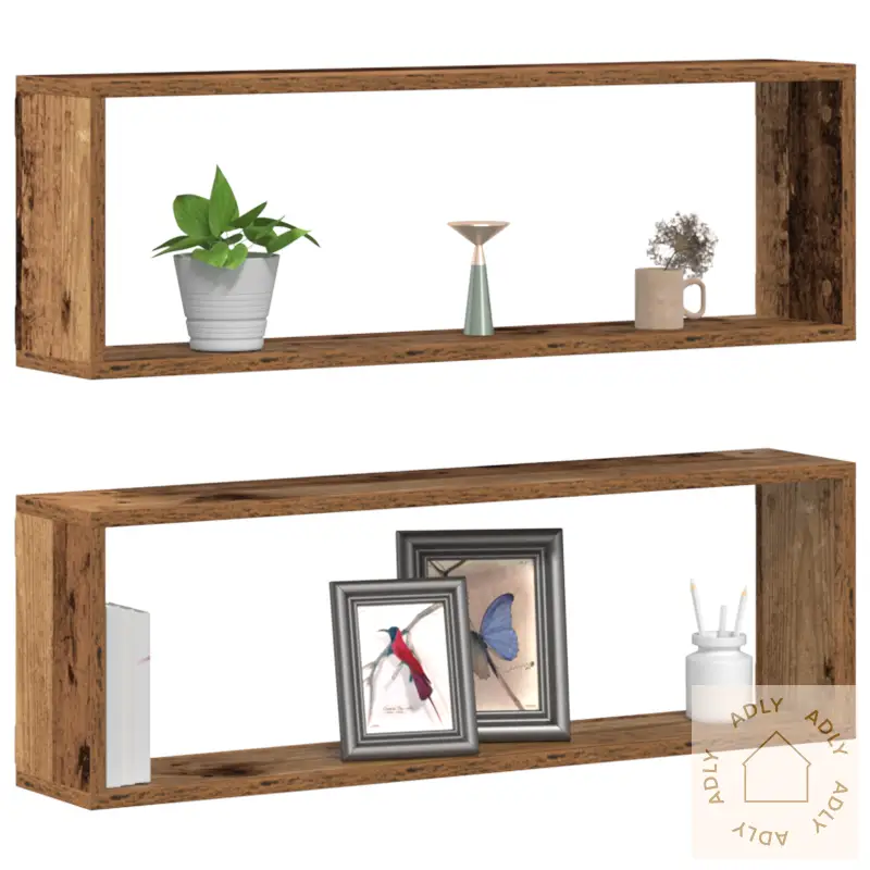 Dette rustikke, veggmonterte lagringshyllesettet kombinerer funksjon og stil på en måte som passer perfekt til moderne leilighetsliv og deg som er ute etter smarte møbler til hjemmet. Den elegante finishen i gammelt tre gir karakter og tilfører varme til ethvert rom, samtidig som hyllene leverer masse praktisk lagringsplass for tingene dine. Rette linjer og en glatt overflate gjør at bokhyllene både ser flotte ut og føles solide – lett å matche med andre møbler og stiler.