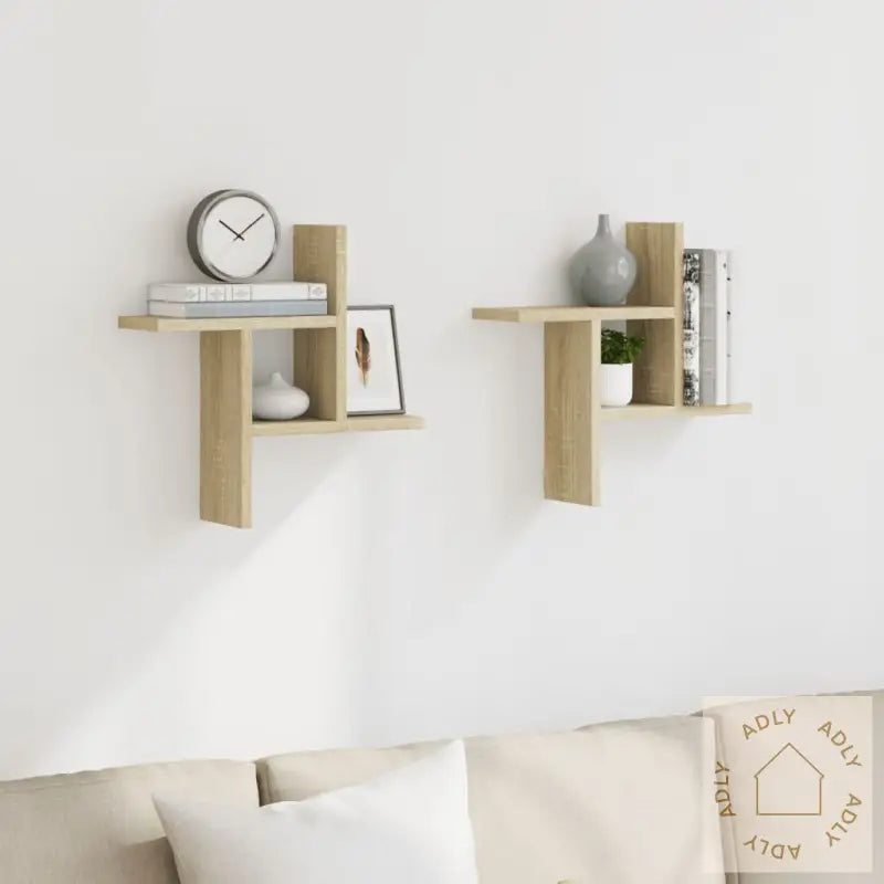 Maksimer interiøret og gi veggen et moderne, stilig preg med disse praktiske vegghyllene i sonoma eik! Perfekt både til møbler til hjemmet og for å komplettere et lekkert innemiljø. Disse flytende hyllene gir deg ikke bare en flott måte å vise frem bøker, dekor eller planter på, men gjør det også enkelt å holde orden i boligen din.