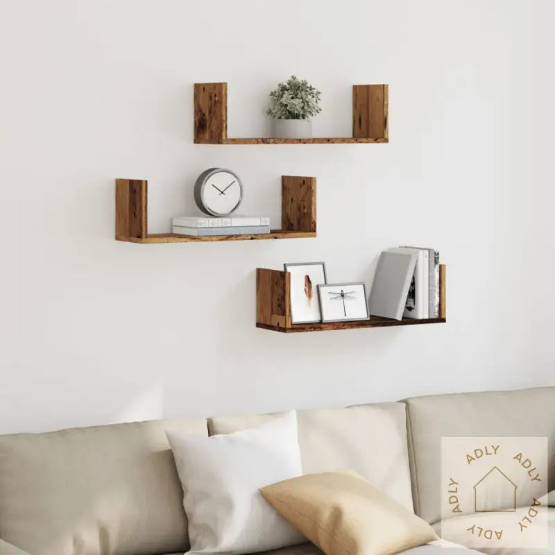 Skruer og plugger for veggmontering er ikke inkludert. Sørg for å finne skruer og plugger som er riktige for nettopp dine vegger – vi anbefaler å snakke med en profesjonell hvis du er usikker. Følg alltid instruksjonene nøye ved montering.Farge: gammelt treMateriale: konstruert treMål (hver): 58 x 18 x 18 cm (B x D x H)Maksimal lastekapasitet (totalt): 15 kgMaksimal lastekapasitet (hver): 5 kgMontering kreves: jaLeveransen inneholder:3 x vegghyller