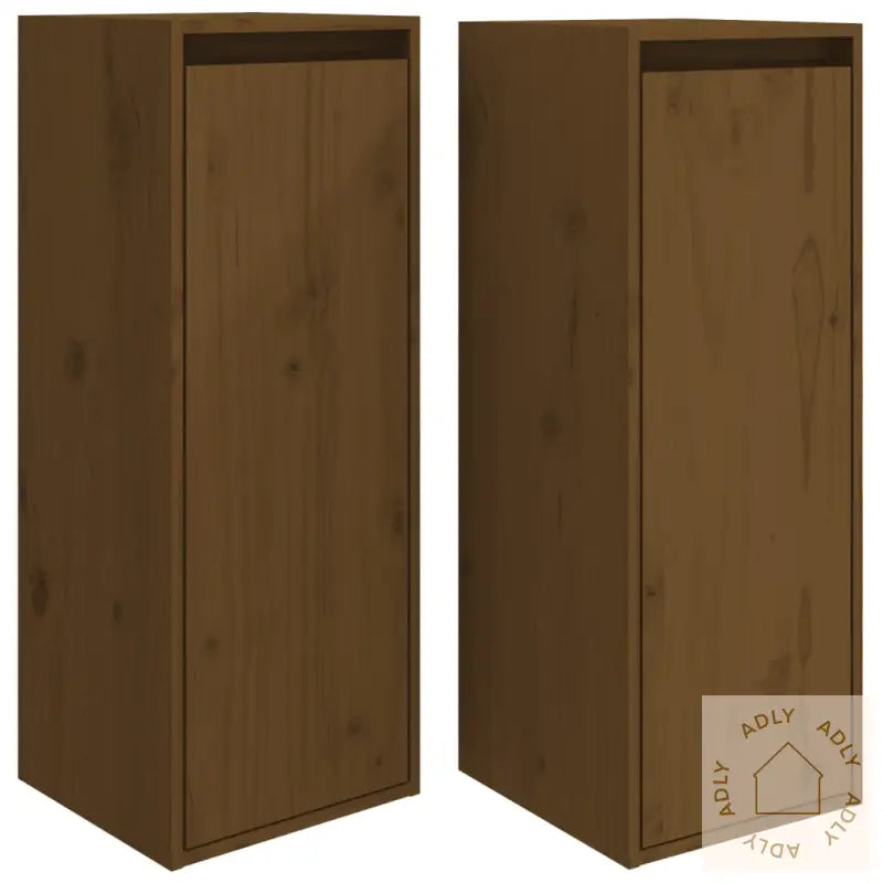 Farge: honningbrunMateriale: heltre furuMål: 30 x 30 x 80 cm (B x D x H)Montering kreves: jaLeveransen inneholder:2 x veggkabinetter