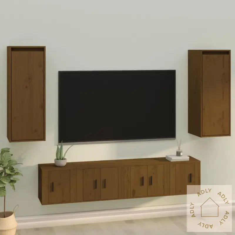 Disse veggskapene i heltre furu gir både et dekorativt og funksjonelt løft til innredningen din. Samtidig er de allsidige, og du kan bruke skapene som TV-benk om ønskelig, noe som gjør dem fleksible og perfekte som møbler til hjemmet.