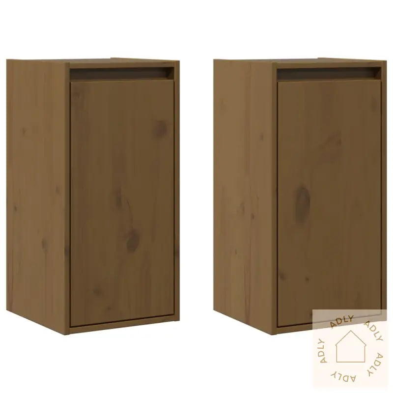 Farge: honningbrunMateriale: heltre furuMål: 30 x 30 x 60 cm (B x D x H)Maksimal lastekapasitet (totalt): 60 kgMontering kreves: jaLeveransen inneholder:2 x veggkabinetter