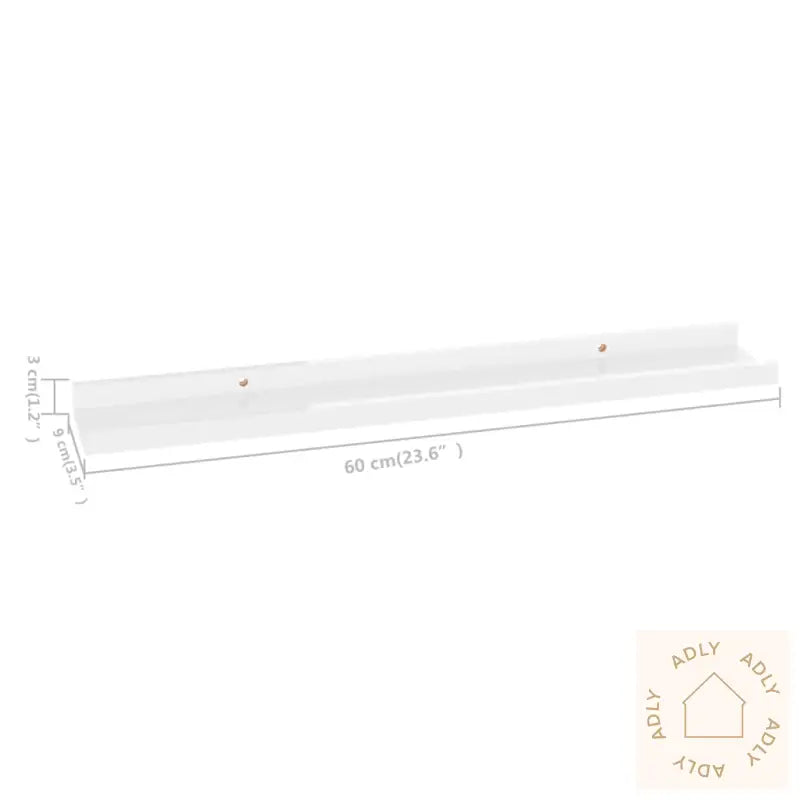 Farge: høyglans hvitMateriale: MDFMål: 60 x 9 x 3 cm (B x D x H)Maksimal lastekapasitet (hver): 5 kgMontering kreves: ja