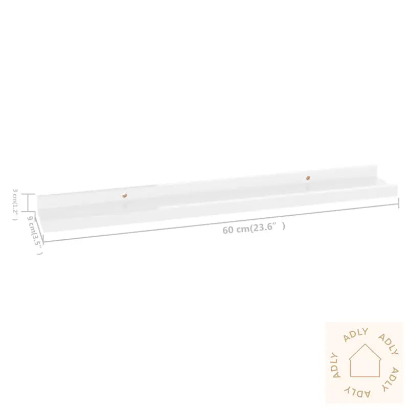Farge: høyglans hvitMateriale: MDFMål: 60 x 9 x 3 cm (B x D x H)Maksimal lastekapasitet (hver): 5 kgMontering kreves: ja
