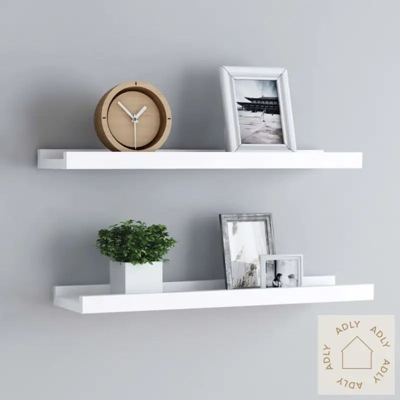Hyllene er laget av robust, lakkert MDF, noe som gjør dem slitesterke og stabile over tid. Du får stor fleksibilitet ved montering: velg om du vil plassere dem enkeltvis eller flere på rad for å skape en helhetlig og personlig stil. Med U-formet design og frontkant får du ikke bare en sikker plass for bilderammer og pynt, men også ekstra trygghet for at ingenting faller ned. Hyllene monteres raskt og enkelt på veggen, takket være praktiske nøkkelhull på baksiden.