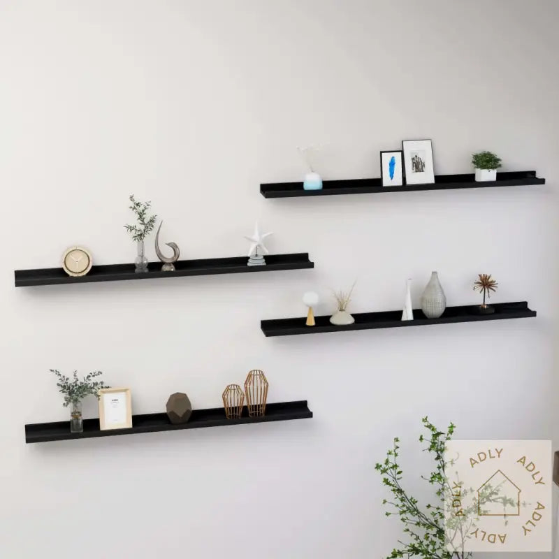 Med sitt minimalistiske design i klassisk svart glir denne hyllen fint inn sammen med andre møbler, enten det er over et skap, sofa eller bord. Vegghyllene gir et friskt løft til rommet og bidrar til en innbydende og elegant atmosfære. Rengjøringen er enkel – dra bare over med en fuktig klut for å holde dem fine i hverdagen.