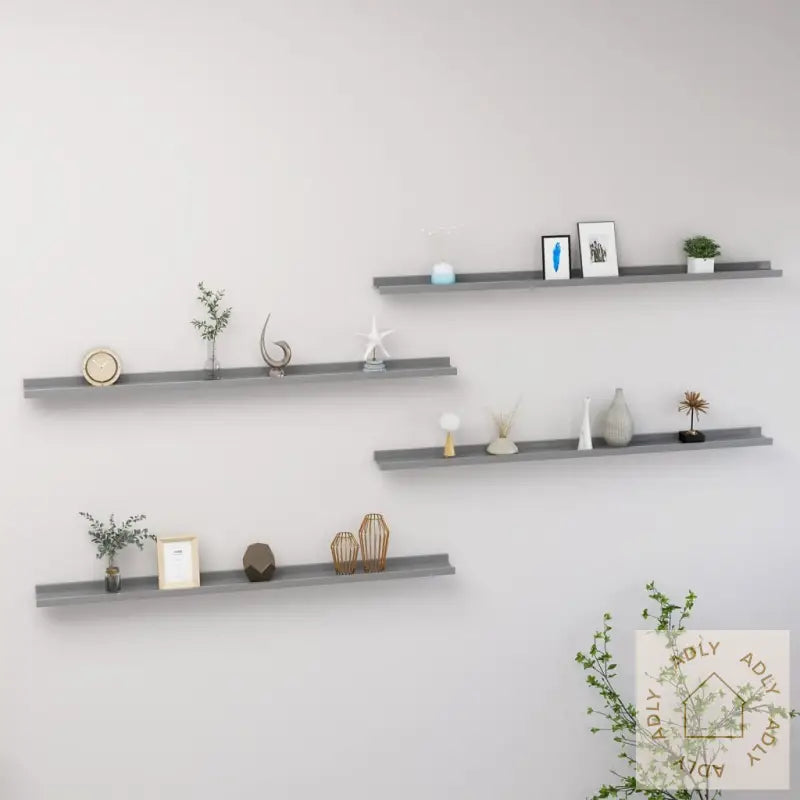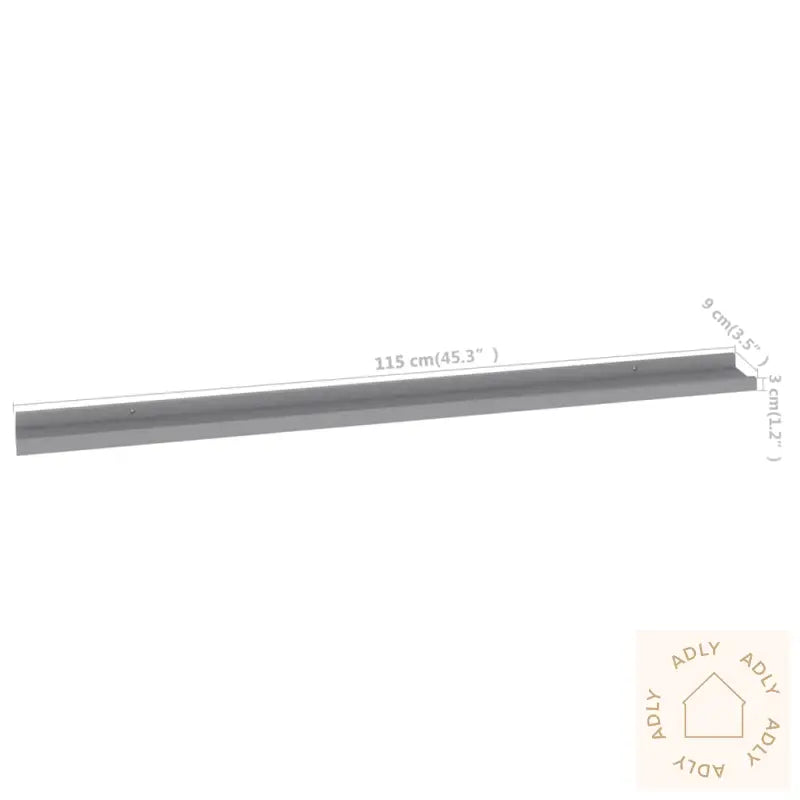 Farge: gråMateriale: MDFMål: 115 x 9 x 3 cm (B x D x H)Maksimal lastekapasitet (hver): 5 kgMontering kreves: ja