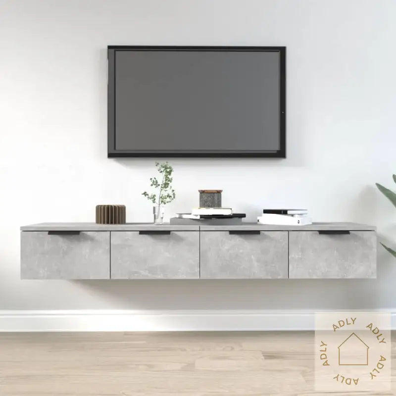 Premium materiale: Skapene er laget i konstruert tre av høy kvalitet med en jevn, moderne finish. Materialet er robust og slitesterkt, tåler daglig bruk og har ekstra god motstand mot fuktighet – helt ideelt om du ønsker møbler som varer lenge og holder seg pent.Stilig design: Den minimalistiske, vegghengte designen gir en eksklusiv og tidløs stil som gjør at skapene passer inn sammen med både klassiske og moderne møbler i hjemmet ditt. Montering på veggen gir også mer plass og kan fremheve TV-en din eller andre dekorative elementer.Optimal lagringsplass: Med romslige skuffer får du rikelig med oppbevaringsplass til alt fra fjernkontroller og elektronikk til bøker eller pyntegjenstander. Dette gjør det lett å organisere eiendelene dine, slik at stuen føles mindre rotete og mer harmonisk.Merk: