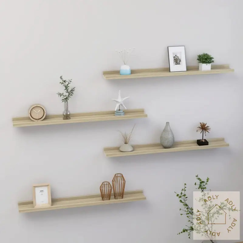 Den veggmonterte hyllen er laget av slitesterk MDF i den populære finishen sonoma eik. Dette robuste materialet gjør at hyllene tåler bruk over lang tid, samtidig som de tilfører rommet et moderne utseende. Hyllene kan enkelt plasseres over skap, sofa eller bord, noe som gir deg fleksibilitet til å utnytte veggplassen optimalt og friske opp interiøret ditt. Kombiner gjerne med dine andre bokhyller for ekstra oppbevaringsmuligheter eller erstatt stående hyller for en luftig følelse.