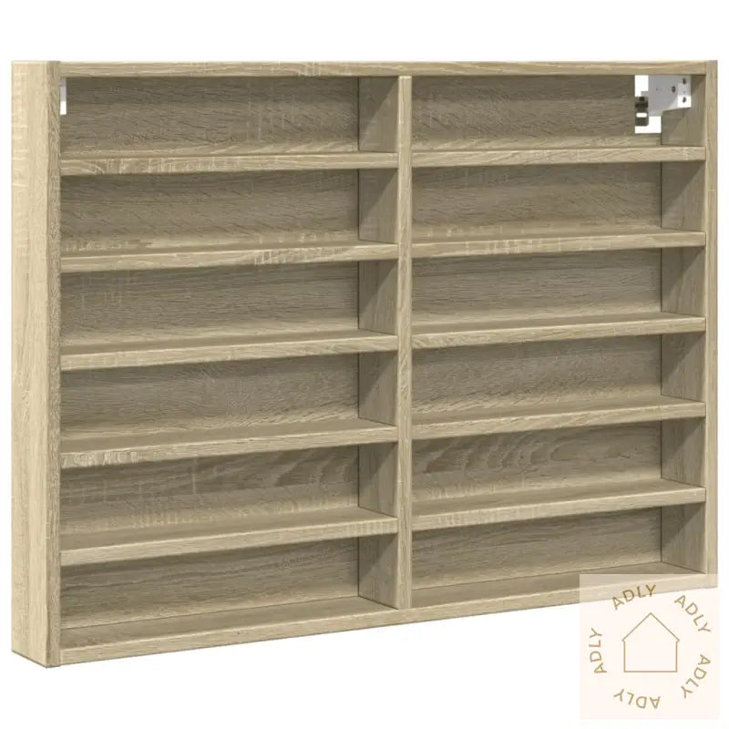 Skruer og plugger til veggmontering følger ikke med. Vi anbefaler å velge festemateriell som passer spesielt for dine vegger. Hvis du er usikker, rådfør deg gjerne med en fagperson. Husk alltid å lese og følge monteringsinstruksjonene nøye.Farge: sonoma eik – en lys og moderne trefinish som gir en naturlig og varm atmosfære i hjemmet.Materiale: konstruert tre, kjent for høy slitestyrke og lavt vedlikehold.Mål: 80 x 8,5 x 58 cm (B x D x H), optimal størrelse som gir god plass uten å virke dominerende.Oppbevaringsplass: 12 hyller gir fleksible muligheter for å organisere etter dine behov.Maksimal lastekapasitet totalt: 50 kg – nok til bøker, dekor og ulike nødvendigheter.Maksimal lastekapasitet pr. hylle: 5 kg.Montering kreves, men prosessen er enkel og rett frem.
