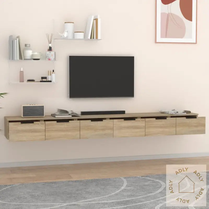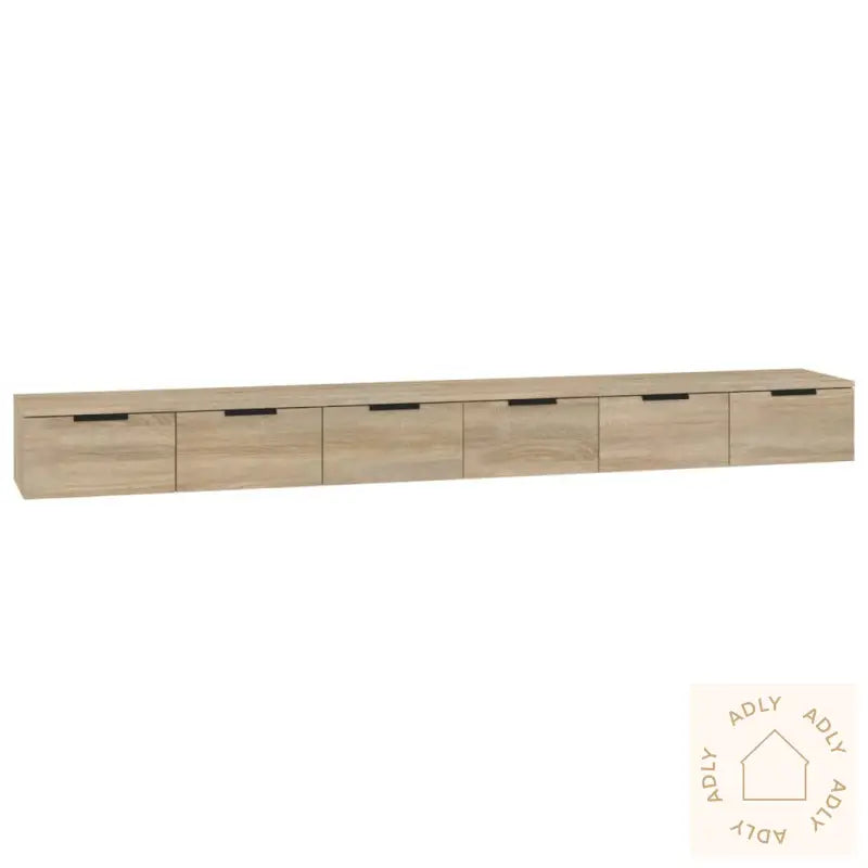 Disse veggskapene i sonoma eik er en smart og stilig løsning for deg som ønsker å maksimere plassen hjemme samtidig som du holder gulvet fritt og ryddig. Skapene passer perfekt som både praktiske møbler og et dekorativt innslag i stua, gangen eller på soverommet.
