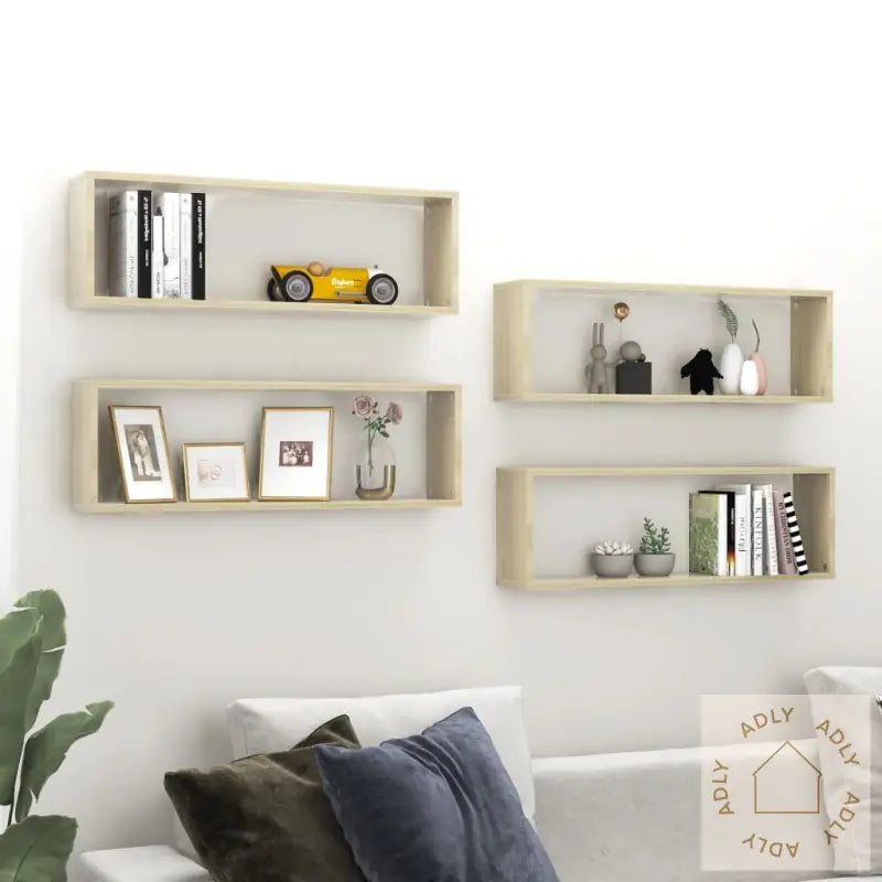 Dette enkle, men elegante vegghyllesettet kombinerer stil og funksjonalitet og er perfekt for å friske opp og organisere enhver vegg i hjemmet ditt. Laget i den moderne fargen sonoma eik, blir hyllene et tiltalende innslag uansett om du ønsker ekstra plass til bøker, små dekorasjoner eller planter – dette er et smart valg for deg som vil ha både design og orden i hjemmet.