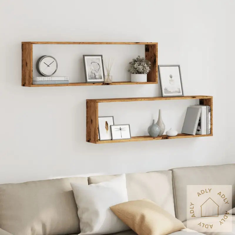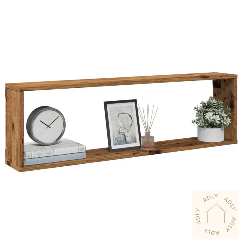 Skruer og plugger for montering på veggen følger ikke med. For sikker og trygg montering anbefales det å bruke passende skruer og plugger til din veggtype. Er du usikker, kontakt en fagperson og følg alltid monteringsanvisningen nøye.Farge: gammelt tre, som gir en lun og tidløs look som lett matcher andre møbler og hagemøbler.Materiale: konstruert treMål: 100 x 15 x 30 cm (B x D x H)Montering kreves: jaLeveransen inneholder:2 x kubehyller til veggDisse kubehyllene er et allsidig og trendy valg for deg som vil kombinere design, holdbarhet og effektiv organisering – perfekt sammen med andre bokhyller og stående hyller for en komplett lagringsløsning.