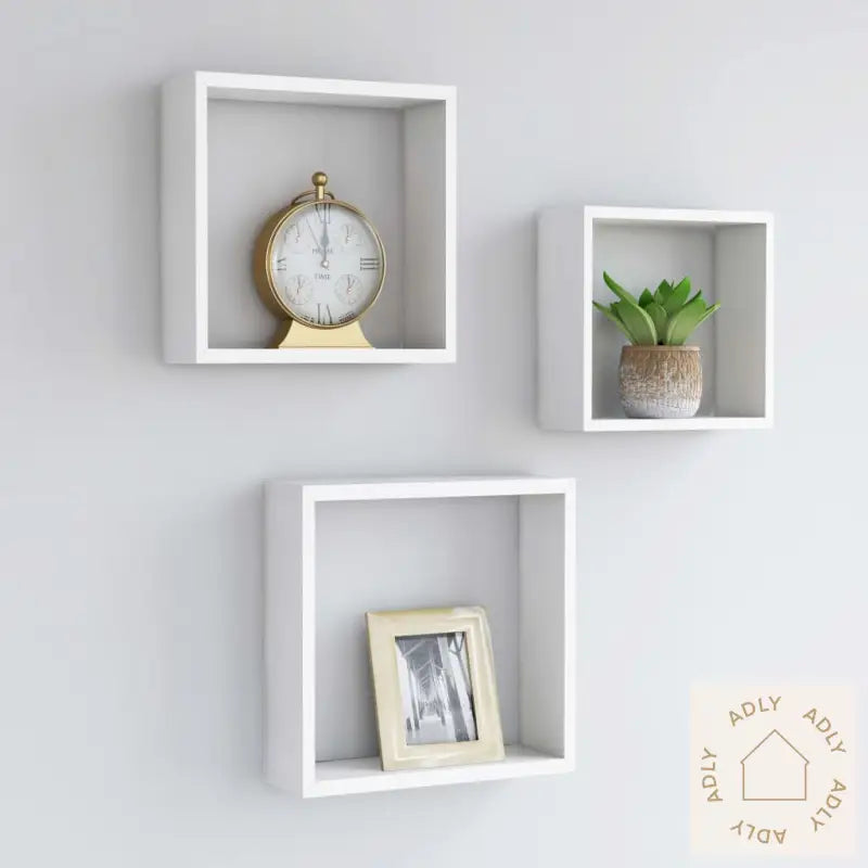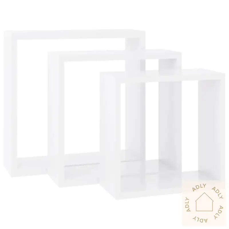 Dette settet med 3 kubeformede vegghyller gir et moderne og stilrent preg til ethvert rom, og fungerer som et naturlig midtpunkt i innredningen. De kubeformede hyllene er laget av solid MDF, noe som gir både god stabilitet og lang holdbarhet.