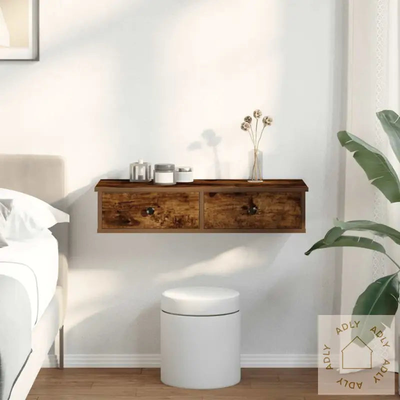 Skruer og plugger for montering på vegg følger ikke med. Vi anbefaler at du bruker egnet festemateriell for akkurat dine vegger. Er du usikker, kan det være lurt å rådføre seg med fagfolk. Husk også å følge monteringsanvisningen trinn for trinn!Farge: Røkt eikMateriale: Konstruert treSamlet mål: 80 x 31 x 17 cm (B x D x H)Mål på hver skuff: 26 x 28 x 11,5 cm (B x D x H)Maks. vektkapasitet: 60 kgMontering kreves: ja