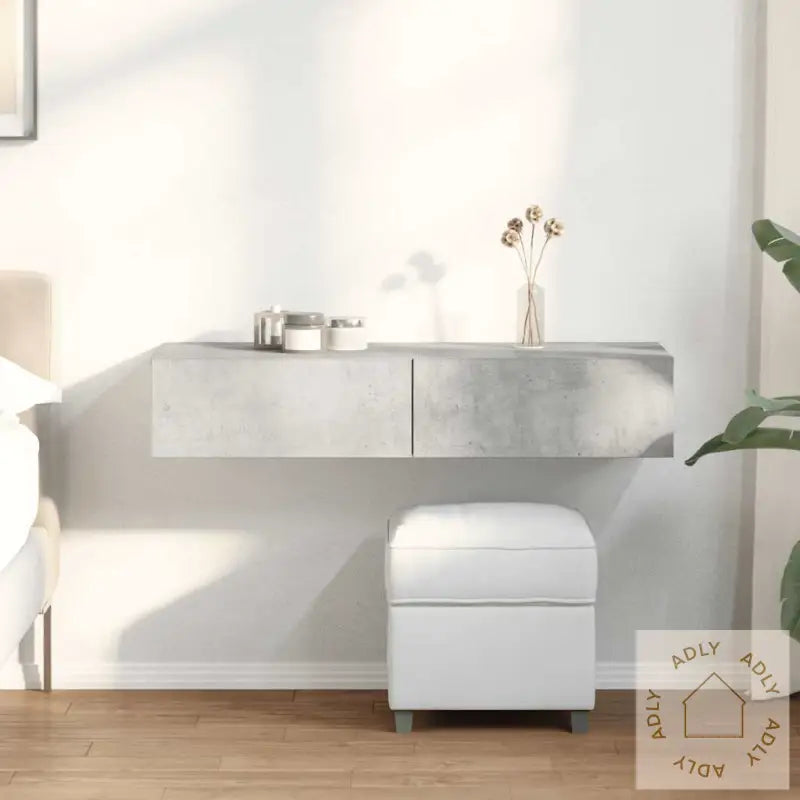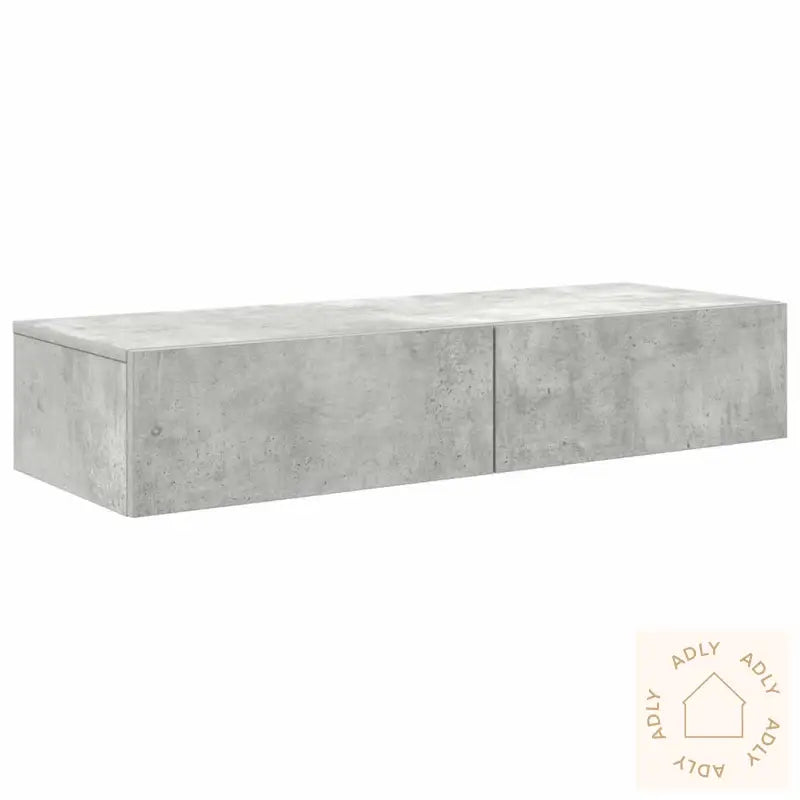 Skruer og plugger for montering på vegg følger ikke med. Vi anbefaler at du bruker festemateriell som passer til veggtypen hjemme hos deg, og rådfør deg eventuelt med fagfolk hvis du er usikker. Følg alltid instrukser nøye for å sikre trygg og riktig montering.Farge: betonggråMateriale: konstruert treSamlet mål: 100 x 36 x 19 cm (B x D x H)Mål på hver skuff: 26 x 28 x 11,5 cm (B x D x H)Maks. vektkapasitet: 60 kgMontering kreves: ja