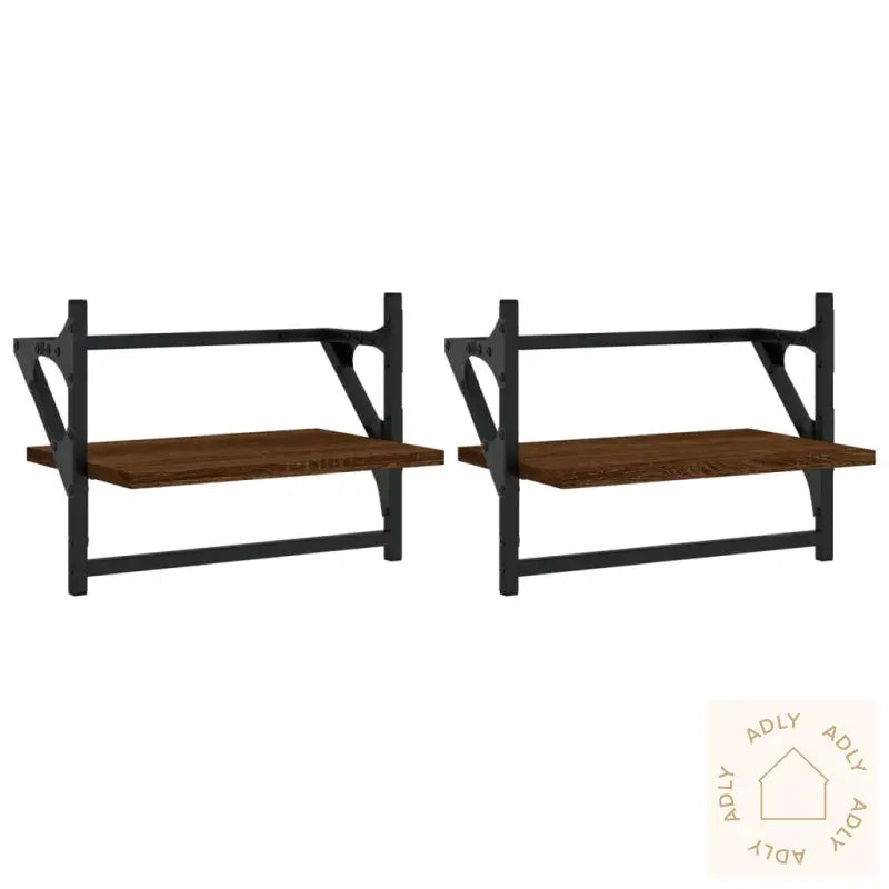 Skrue(r) og plugg(er) til innfesting i vegg følger ikke med i pakken. Husk å velge festemateriell som passer til din veggtype. Er du usikker, anbefales det å spørre en fagperson. Følg instruksjonene nøye for trygg montering.Farge: brun eikMaterialer: konstruert tre, metallMål: 40 x 25 x 30 cm (B x D x H)Montering kreves: jaLeveransen inneholder:2 x vegghyller