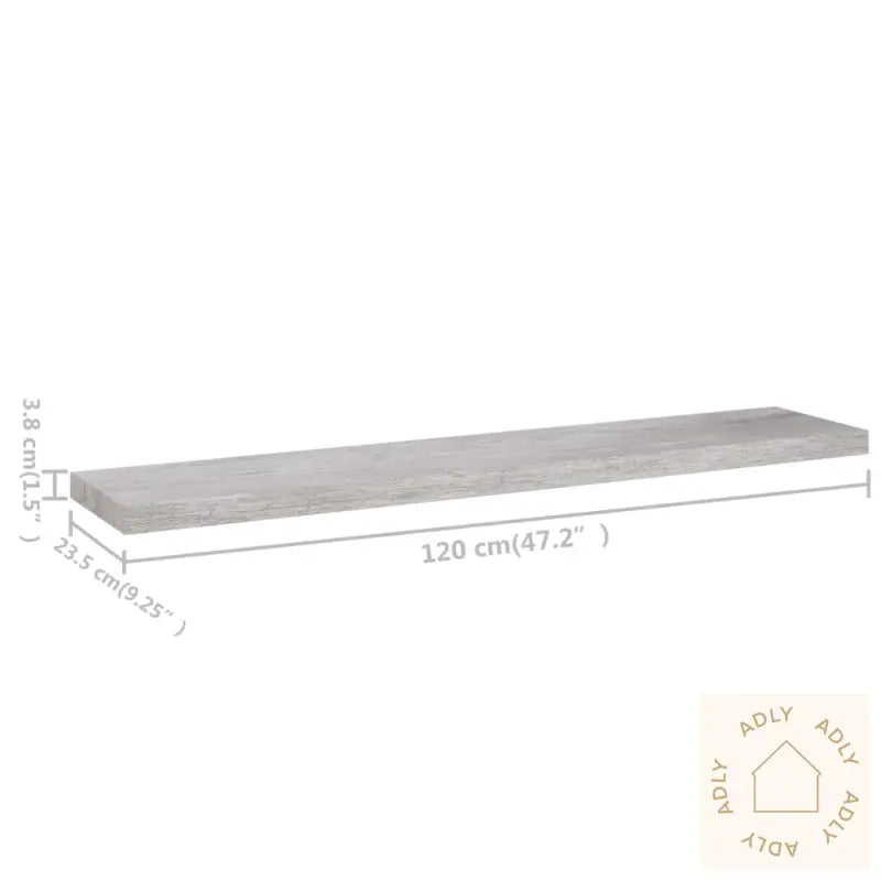 Farge: betonggråMaterialer: bikake MDF, metallMål: 120 x 23,5 x 3,8 cm (L x B x H)Maksimal lastekapasitet (hver): 10 kgUsynlig monteringssystemMontering kreves: jaLeveransen inneholder:4 x vegghyller
