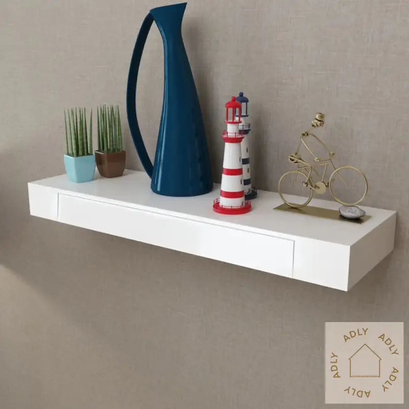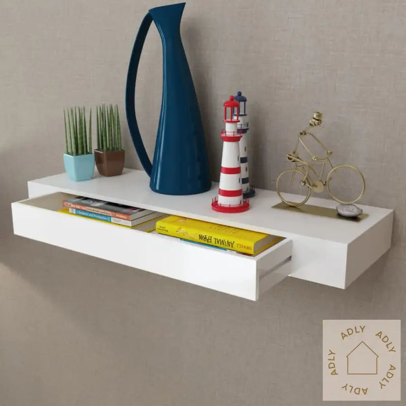 Denne vegghyllen blir fort et blikkfang og en praktisk løsning i hjemmet ditt. Med sitt moderne og diskrete design, og et usynlig monteringssystem, passer den perfekt for deg som ønsker bokhyller og stående hyller uten synlige fester. Hyllen er enkel å montere, og har god plass til både priser, bøker, samleobjekter og dekorative ornamenter. Den integrerte skuffen gir deg ekstra oppbevaring av småting som nøkler, DVD-er, notisblokker eller penner, så alt du trenger er lett tilgjengelig og organisert.