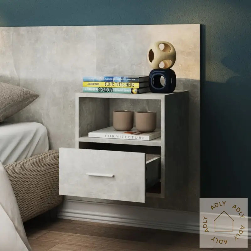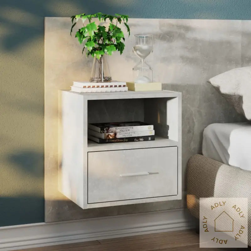 Veggmontert design: Den smarte, flytende konstruksjonen gjør det enkelt å montere nattbordet på veggen. Slik sparer du verdifull gulvplass og får bedre oversikt – helt perfekt for små rom, eller om du bare vil ha en luftig følelse. Det gir også mulighet for enkel rengjøring under møblene og gjør at støvsugeren kommer lett til.Flerfunksjonelt skap: Dette nattbordet er både praktisk og dekorativt. Du får plass til bøker, småting, pyntegjenstander eller det du liker å ha lett tilgjengelig på soverommet. Kombiner gjerne med bokhyller og stående hyller for et helhetlig og gjennomført uttrykk hjemme.