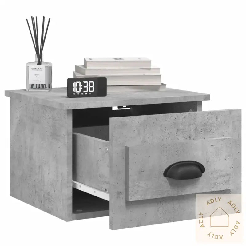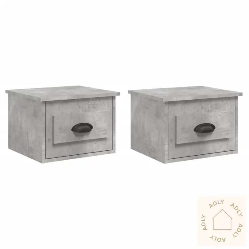 Hvert produkt leveres med en tydelig manual for å sikre en enkel og grei montering.Merk at skruer og plugger til veggmontering ikke følger med. Det er viktig å bruke festemidler som passer for nettopp dine vegger – kontakt gjerne en fagperson hvis du er usikker. Følg alltid instruksjonene nøye for trygg og stødig montering.Farge: betonggråMateriale: konstruert treMål: 41,5 x 36 x 28 cm (B x D x H)Leveransen inneholder:2 x nattbordDisse nattbordene passer perfekt for deg som ønsker funksjonelt og stilig interiør – og de kan enkelt kombineres med andre møbler til hjemmet for en helhetlig stil. Lettere oppbevaring gir rommet et ryddigere uttrykk, samtidig som kvalitet og design ivaretas. Gjør soverommet komplett med smarte løsninger som matcher både bokhyller, stående hyller og resten av interiøret.