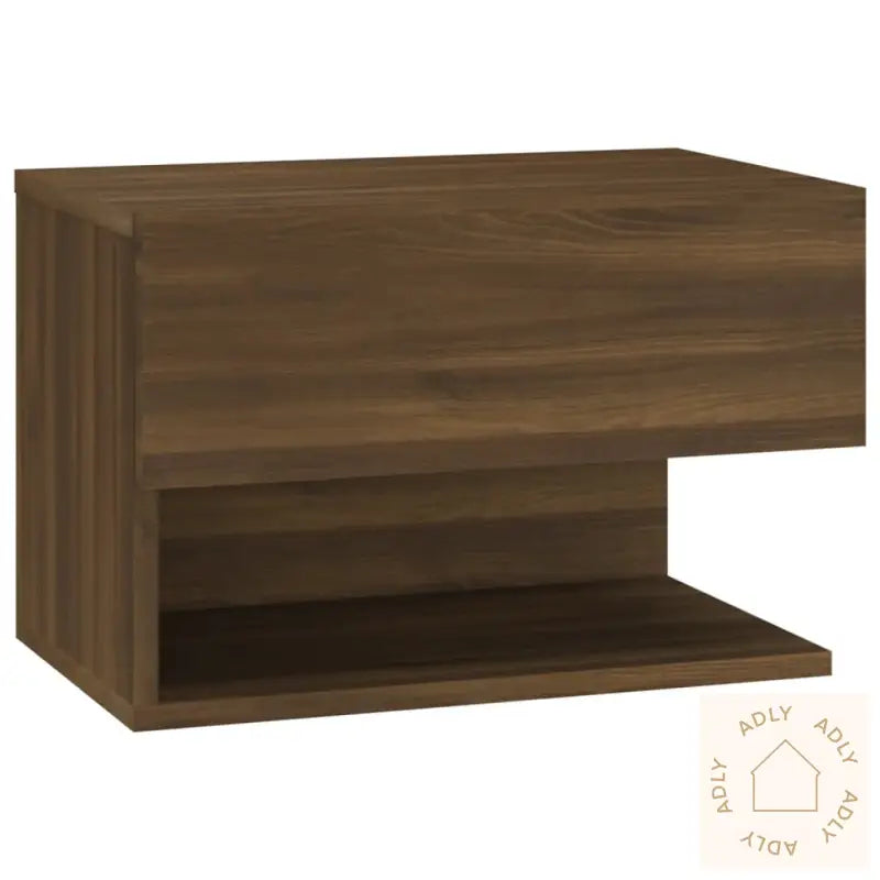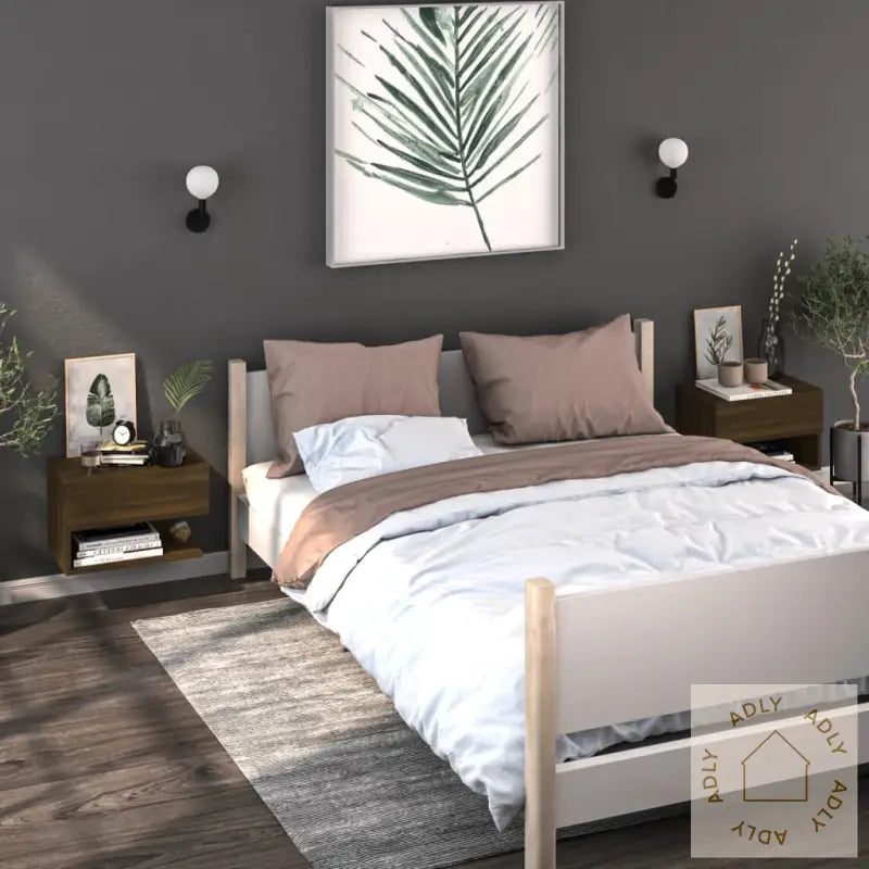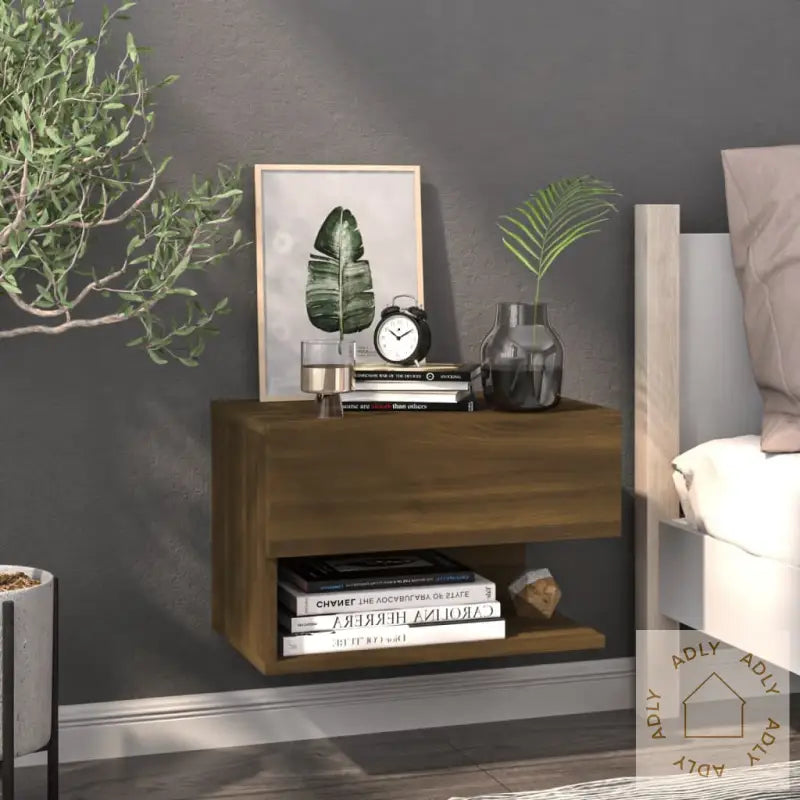 Veggmontert design: Med sitt stilrene, flytende design monteres denne enheten direkte på veggen, og frigjør verdifull gulvplass slik at du får et renere og mer moderne uttrykk på soverommet ditt.Flerfunksjonelt skap: Det flytende nattbordet gir praktisk lagringsplass til alt fra bøker, små pyntegjenstander, planter og personlige ting. Dette gjør det enkelt å holde orden og gir samtidig rommet et dekorativt løft. Nattbordet gjør virkelig en tom vegg til et blikkfang, enten du ønsker å matche med andre brun eik møbler til hjemmet eller skape kontrast.Materiale som er lett å rengjøre: Nattbordet er laget av konstruert tre i brun eik, som ikke bare har en elegant overflate, men også er slitesterkt og stabilt. Materialet tåler fuktighet og holder seg pent lenge, og rengjøringen går som en lek med en fuktig klut.ADVARSEL: