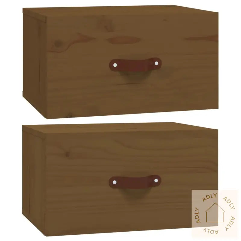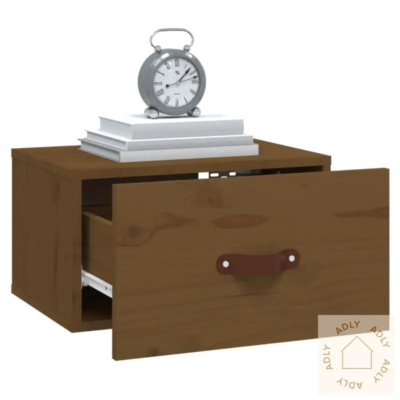 Skrue(r) og plugg(er) for feste i veggen følger ikke med. Bruk skruer og plugger som er tilpasset din veggtype. Dersom du er usikker, anbefales det å rådføre seg med en fagperson. Les og følg monteringsanvisningen nøye for trygg montering av dine nye møbler.Det følger med enkel og tydelig monteringsveiledning i esken for at du raskt skal komme i gang med å bruke dine nye nattbord.Farge: HonningbrunMateriale: Heltre furuMål: 40 x 29,5 x 22 cm (B x D x H)Leveransen inneholder:2 x vegghengte nattbord