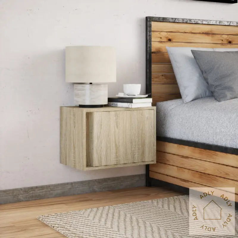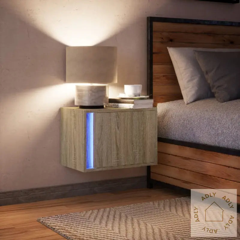 Oppgrader soverommet ditt med dette veggmonterte nattbordet i sonoma eik, utstyrt med moderne LED-lys! Dette stilrene nattbordet passer perfekt inn sammen med andre møbler til hjemmet, og gir rommet ditt et moderne og innbydende preg.
