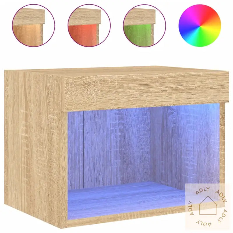 Nattbordet med LED lys kombinerer stilig design og praktisk funksjonalitet, noe som gjør det til et moderne blikkfang på soverommet. Den trendy sonoma eik-finishen gir et naturlig og tidløst uttrykk som passer inn i ulike interiørstiler.