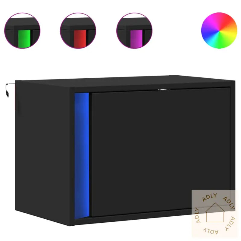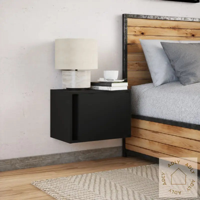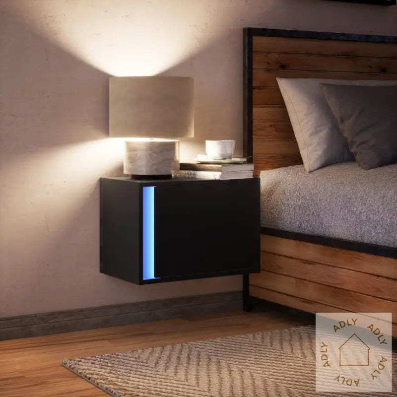 Skruer og plugger til innvendig vegg følger ikke med. Velg alltid beslag som passer din veggtype, og søk råd hos fagfolk dersom du er usikker. Følg alltid monteringsanvisningene nøye.Nattbordet kommer med USB-kontakt, og krever en sertifisert 5V USB-strømkilde (ikke inkludert).Farge: svartMateriale: konstruert treMål: 50 x 31 x 35 cm (L x B x H)Antall skuffer: 1Med LED-lysMontering kreves: ja
