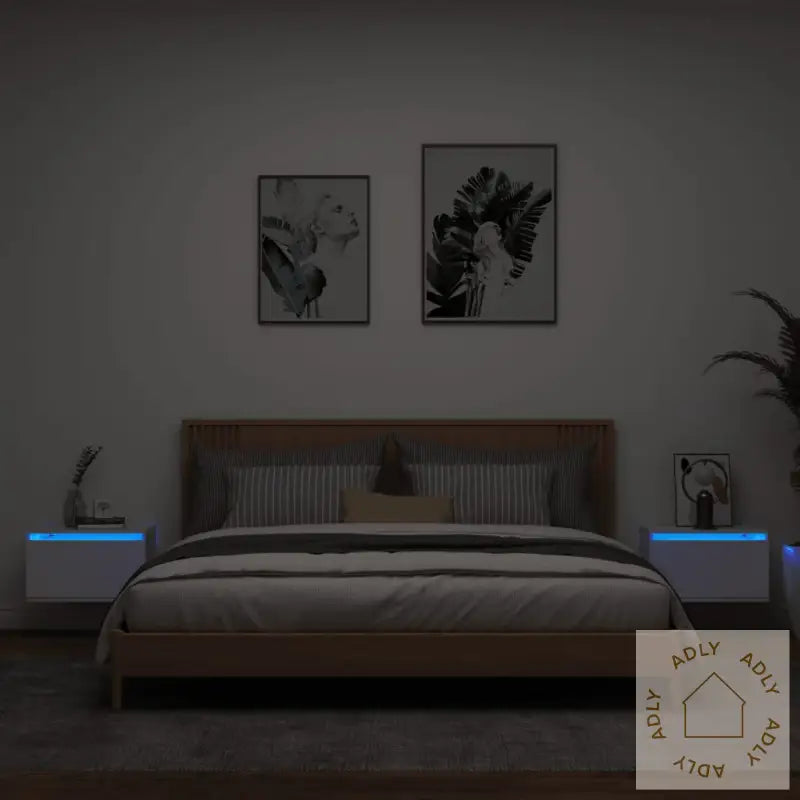 Disse veggmonterte nattbordene med rgb led-lys er en smart og plassbesparende løsning når du ønsker å maksimere romfølelsen, holde gulvet fritt for rot og samtidig løfte stilen på soverommet. Passer perfekt sammen med andre moderne møbler til hjemmet.