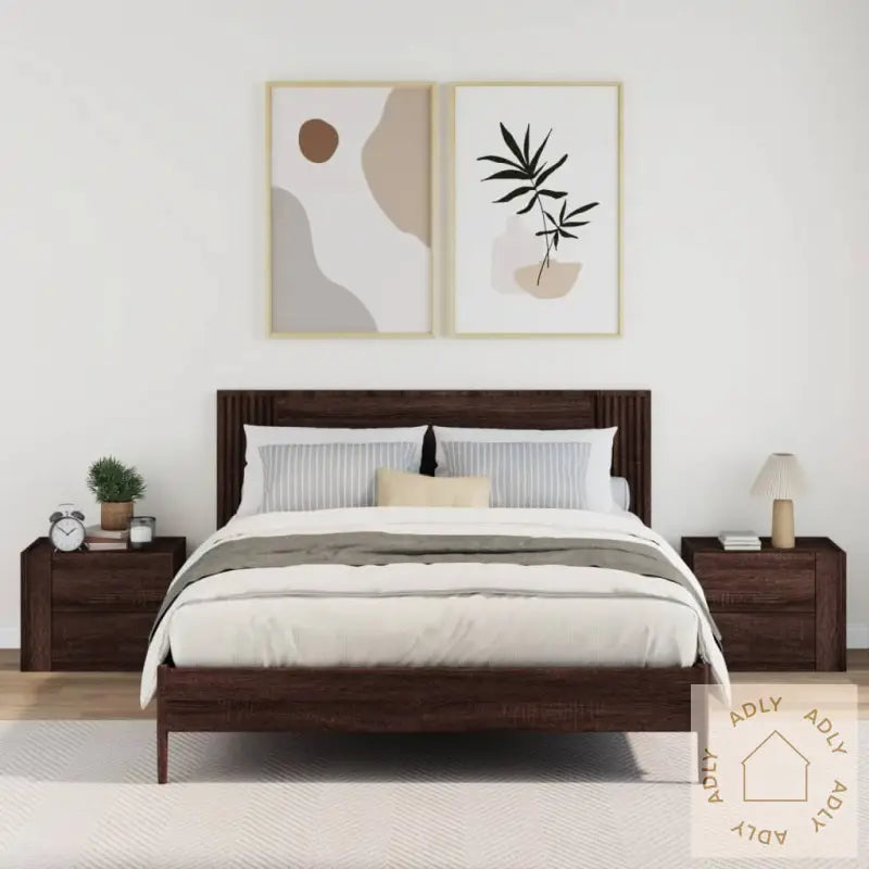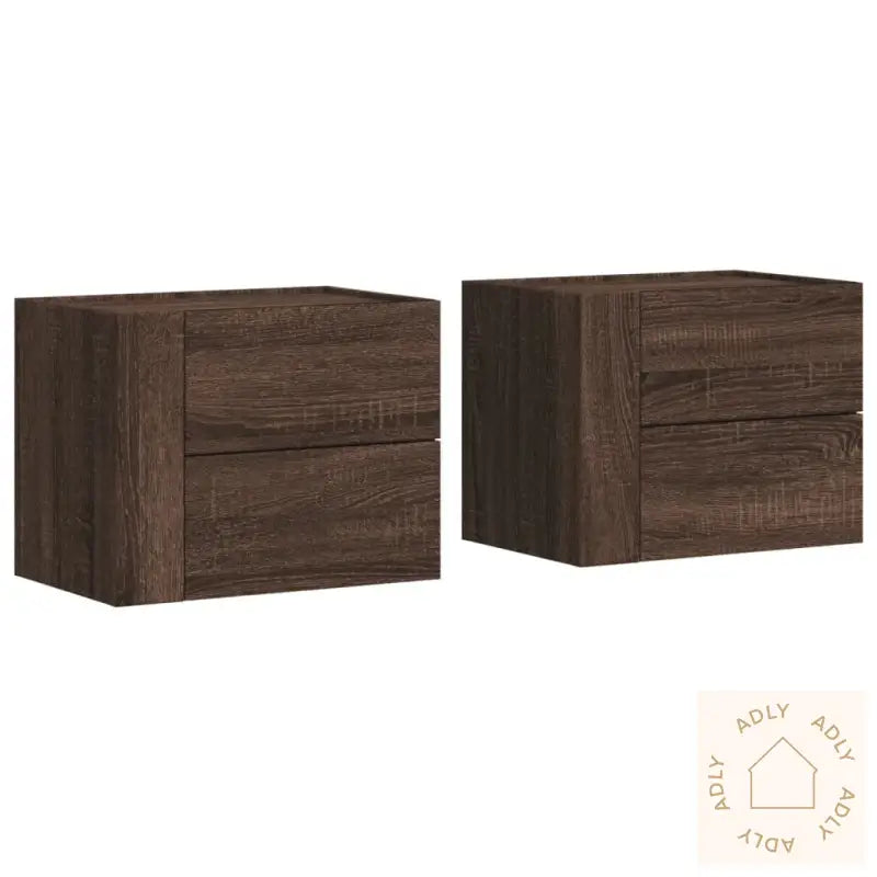 Materialet av konstruert tre gir nattbordene både robusthet og god stabilitet. Den glatte overflaten ser eksklusiv ut, og treverket er motstandsdyktig mot fuktighet – smart for nordisk klima. Her får du møbler som varer, og som holder seg fine med minimalt vedlikehold.Veggmonterte nattbordet tilbyr rikelig med lagring gjennom praktiske skuffer, slik at du alltid har det viktigste for hånden – enten det er bøker, ladere eller andre småting du bruker ofte. Dette gjør det lett å holde både gulv og overflate fri for rot.Du kan montere de to hjørnepanelene på nattbordet akkurat slik det passer deg, enten begge foran, begge bak, eller én foran og én bak. Dette gir deg fleksibilitet til å tilpasse utseendet og funksjonen etter rommets behov.Med sin plassbesparende veggmonterte design frigjør nattbordet gulvplass og gjør rengjøringen enklere. Perfekt for både små og store rom hvor maksimal utnyttelse av plassen er viktig.Den solide og stabile bordplaten tåler bruk i hverdagen og egner seg godt som utstillingsplass for dekor, bilder eller potteplanter. Maksimal lastekapasitet på hele 30 kg for øverste lag sikrer at selv litt tyngre gjenstander står trygt.Godt å vite: