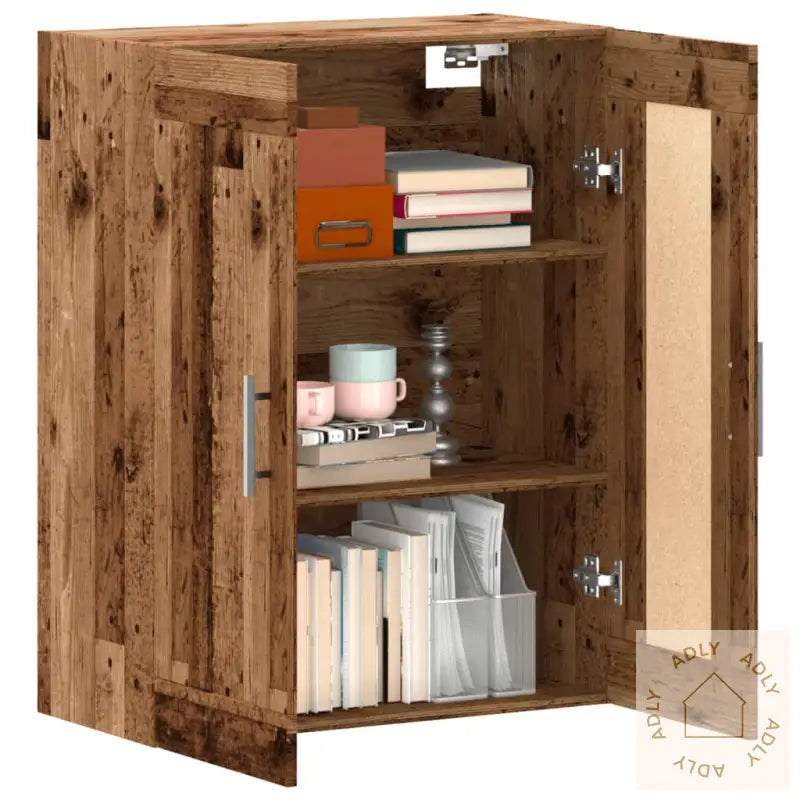 Stabilt og slitesterkt materiale: Skapet er laget av konstruert tre, et robust og stabilt materiale kjent for sin jevne overflate. Det tåler fuktighet, vridning og sprekker, noe som gir deg et møbel du kan stole på i hverdagen, uansett om det brukes sammen med andre møbler til hjemmet eller står for seg selv.Rikelig med lagringsplass: Med 3 rom, skjult bak 2 solide dører, får du god plass til å organisere alt fra bøker og dokumenter til tilbehør eller elektronikk. Perfekt for å holde hjemmet ryddig og oversiktlig.Plassbesparende: Skapet monteres enkelt på veggen, slik at du får ekstra oppbevaringsplass uten at det tar opp gulvplass. Dette gir mer luft og bevegelsesfrihet i hjemmet, særlig der plassen er begrenset – både på små soverom, kontor eller stue.Elegante håndtak: De stilige dørhåndtakene i sort jern gir en moderne kontrast til det varme treverket. Håndtakene er både visuelt tiltalende og svært holdbare, noe som gir møbelet et løft med både funksjonalitet og stil.Allsidig skap: Dette oppbevaringsskapet kan enkelt plasseres på toppen av en skjenk for å lage et highboard, og dermed utvide oppbevaringsmulighetene dine. Det enkle og rene designet gjør at skapet glir rett inn i stuen, soverommet, arbeidsrommet eller andre oppholdsrom hvor du ønsker praktisk lagringsplass. Kombiner gjerne med andre møbler eller hagemøbler for en helhetlig stil.Godt å vite: